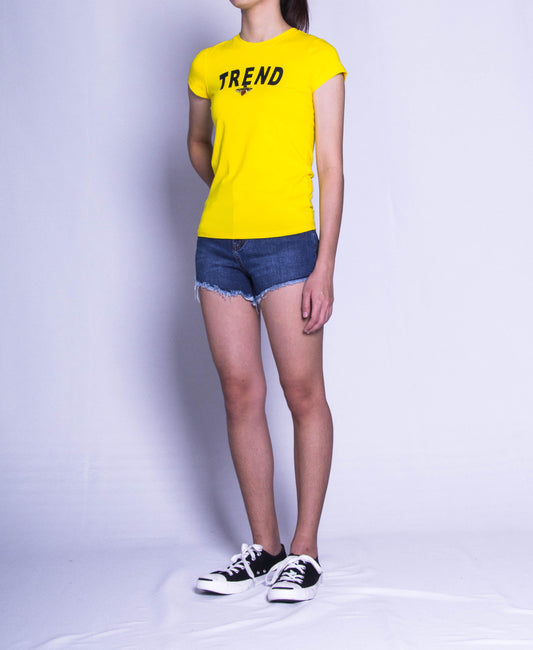 Women Short Sleeve Graphic Tee - Yellow - F9W199