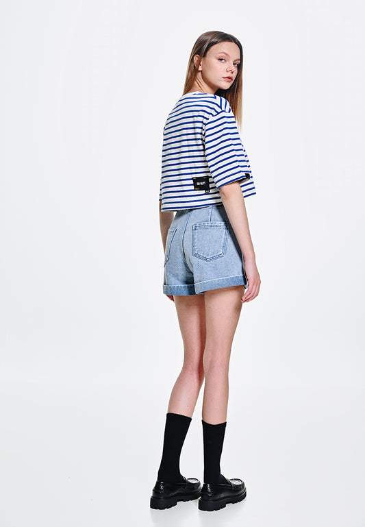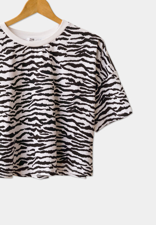 Women Cropped Short-Sleeve Fashion Tee - White - 310120