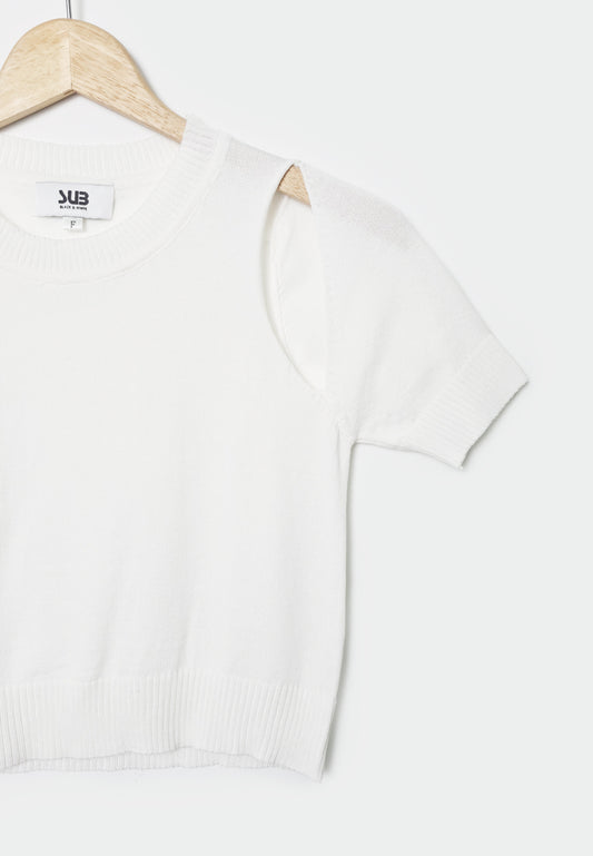 Women Cold Shoulder Short-Sleeve Blouse - White - F1W168