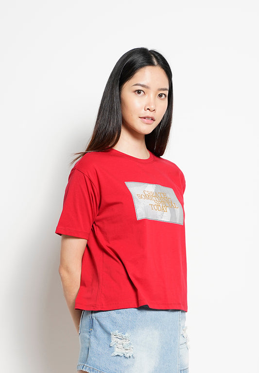 Women Short-Sleeve Graphic Tee - Red - H1W188
