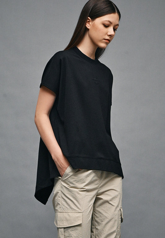 Women Oversized Sleeveless Fashion Tee - Black - 410302