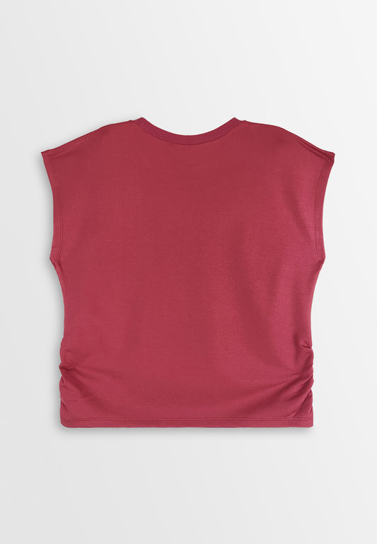 Women Sleeveless Fashion Tee - Maroon - 410471