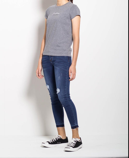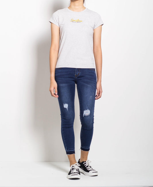 Women Short Sleeve Graphic Tee - Grey - F0W694