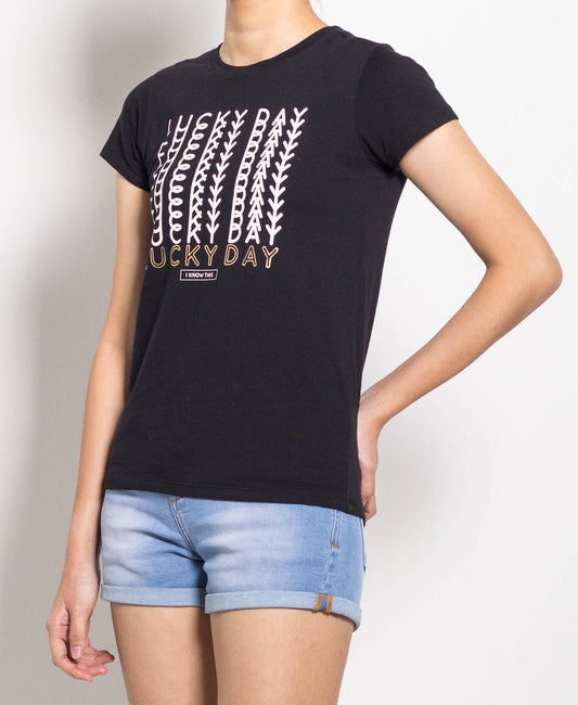 Women Short Sleeve Graphic Tee - Black - F9W204
