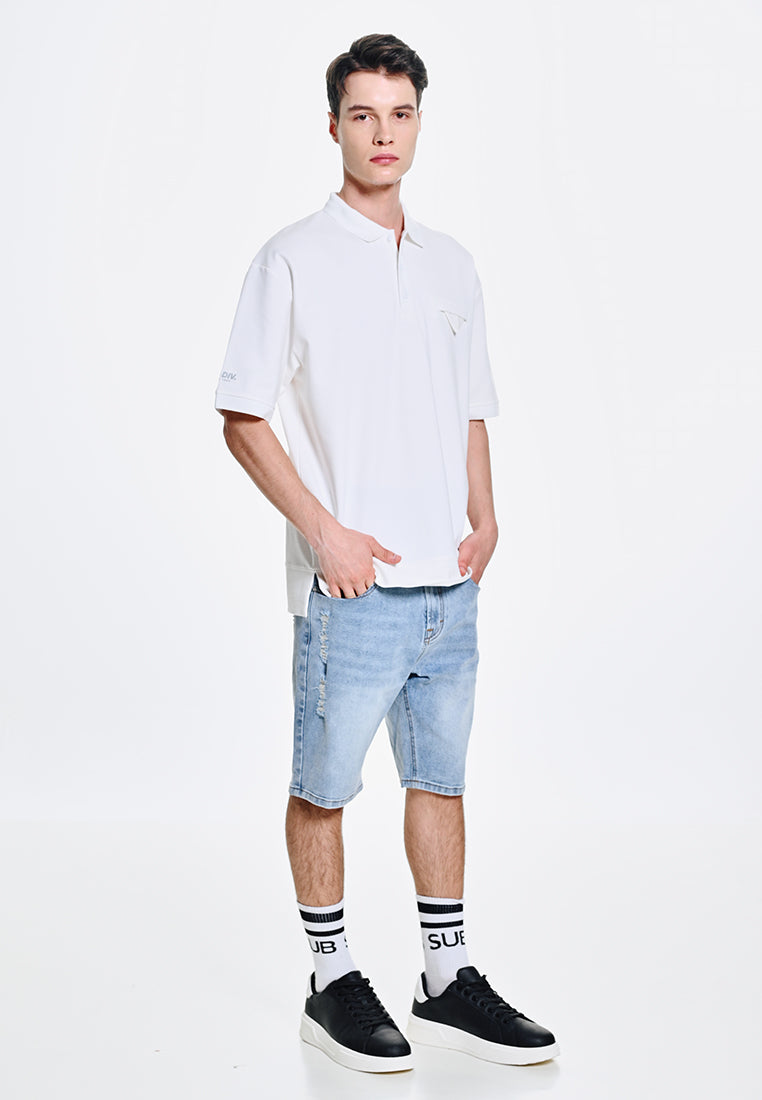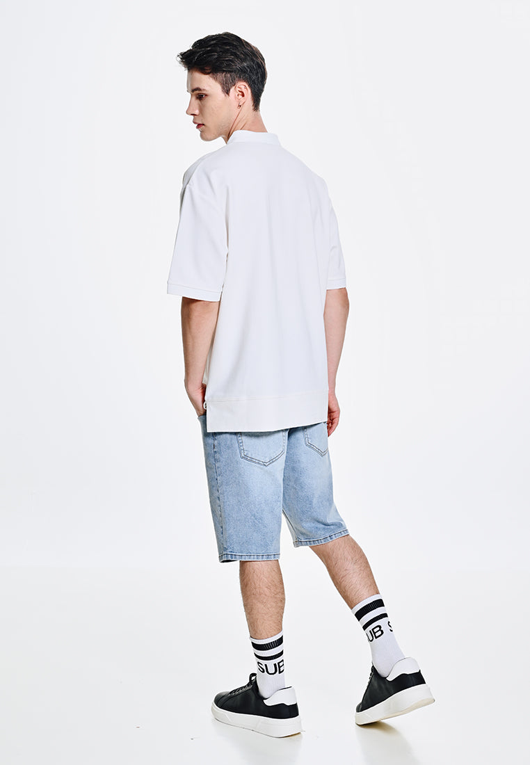 Men Short-Sleeve Oversized Polo Tee - White - 310224