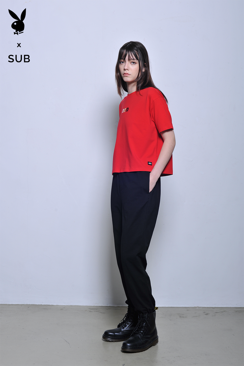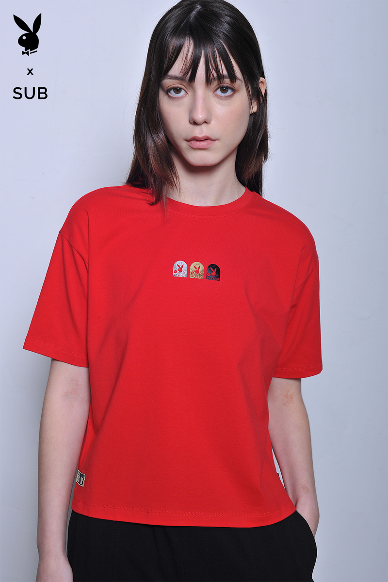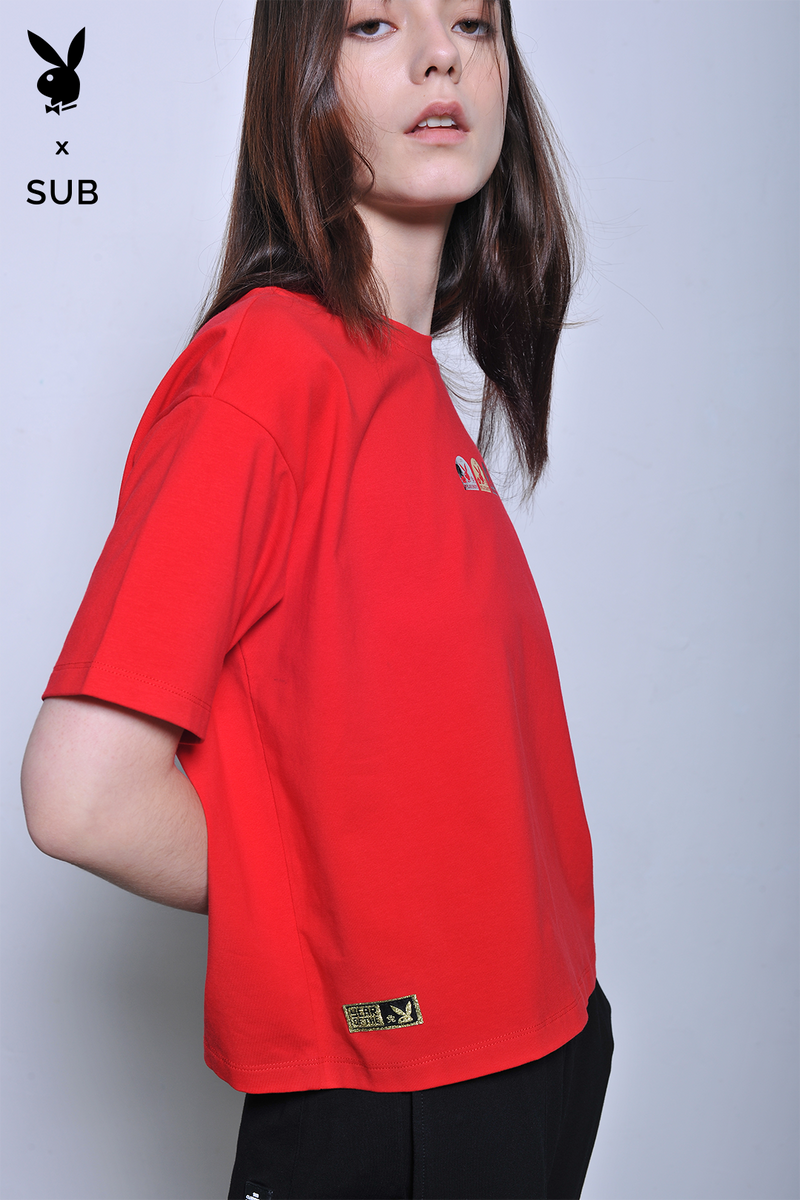 Playboy x SUB Women Short Sleeve Fashion Tee - Red - H2W733