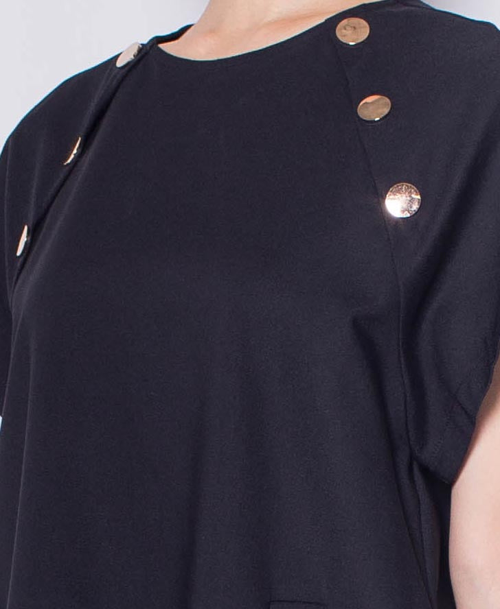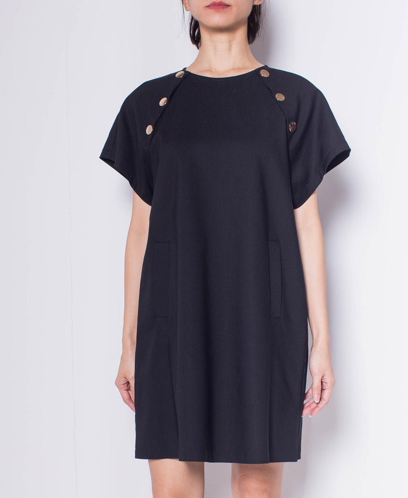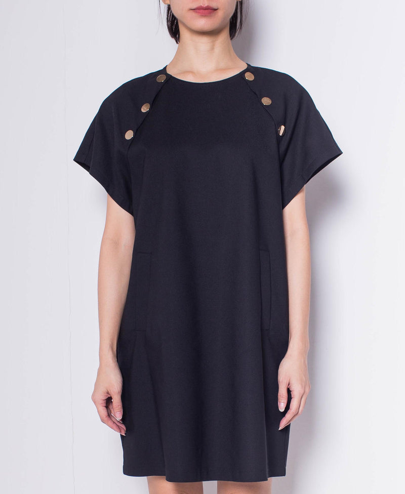Women Raglan Sleeve Keyhole Back Dress - Black - H0W766