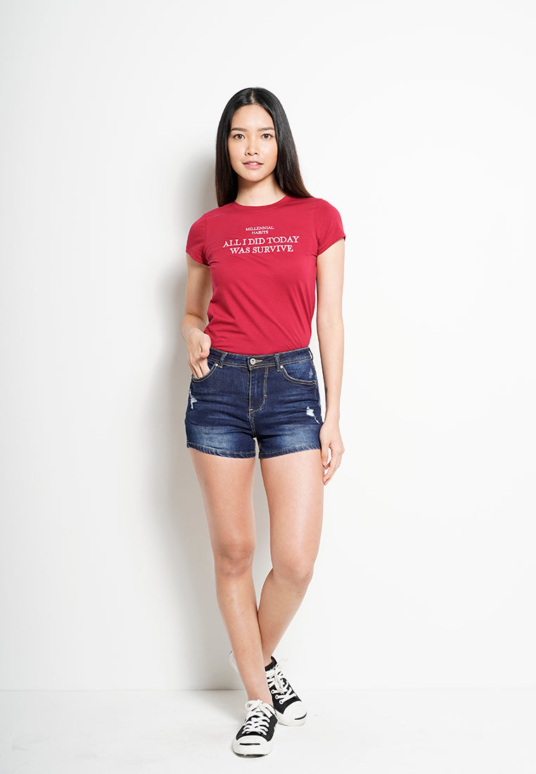 Women Ripped Short Jeans - Dark Blue - H0W918