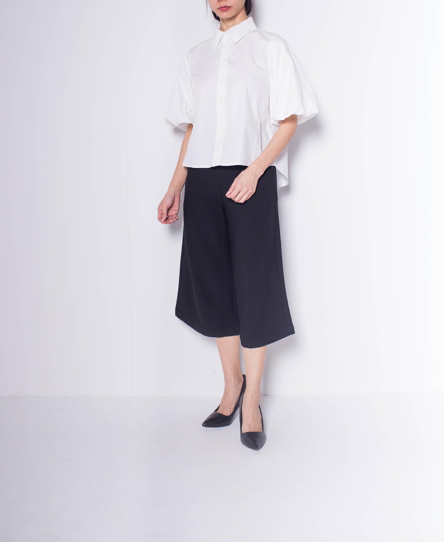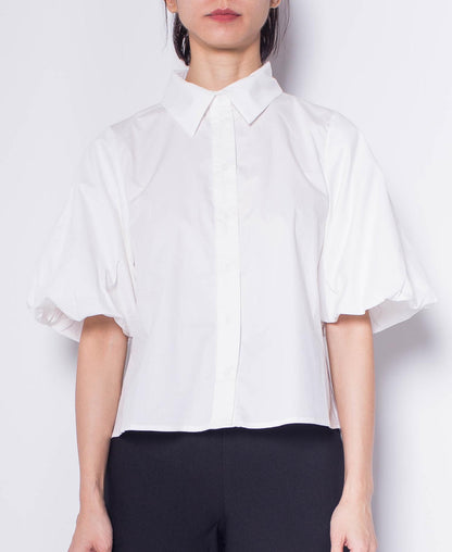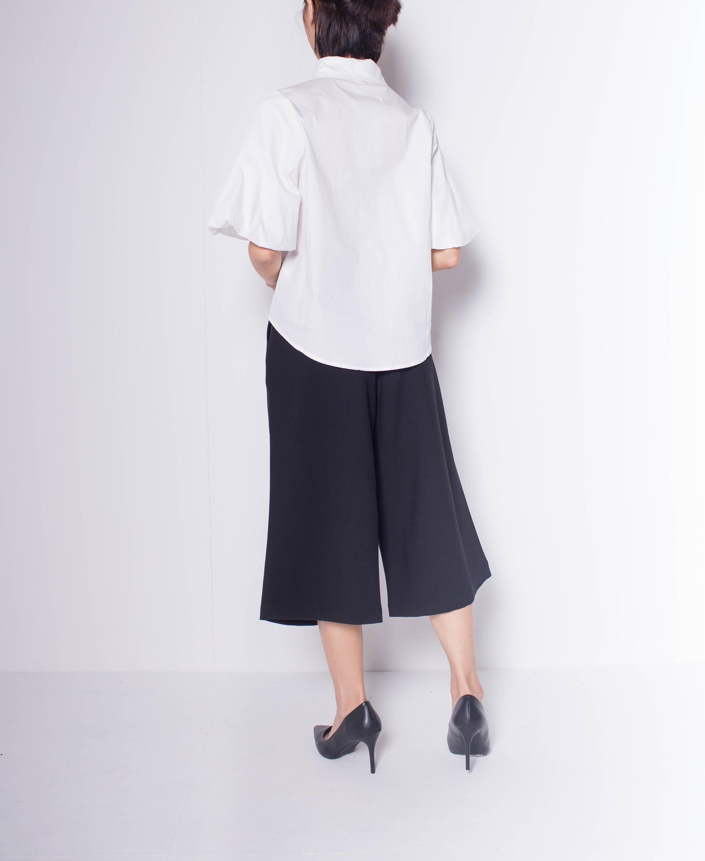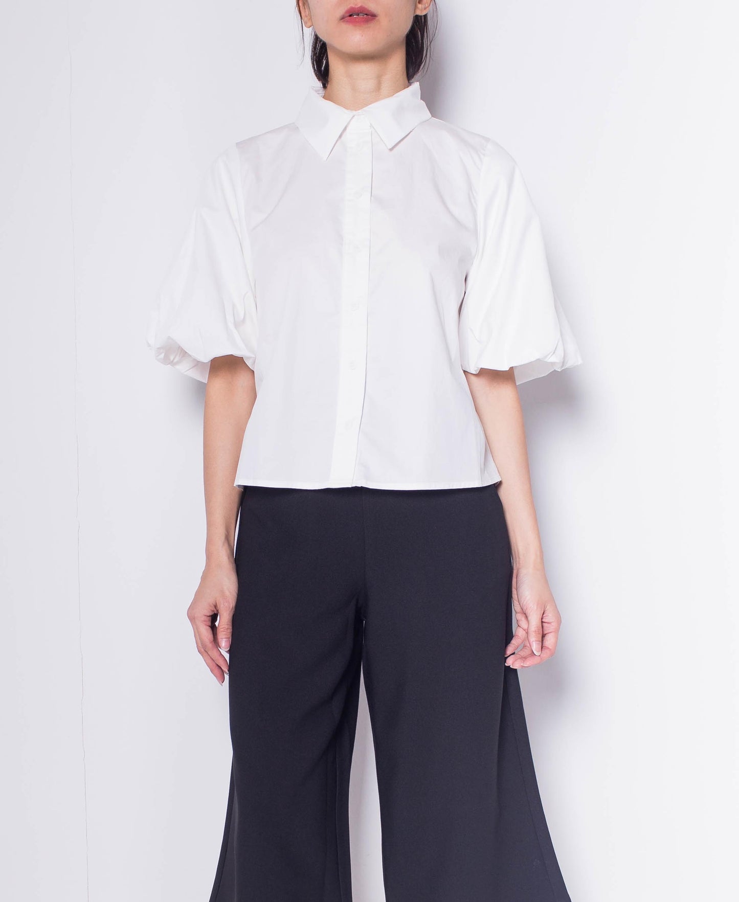 Women Single Breasted Lantern Sleeve Blouse - White - H0W934