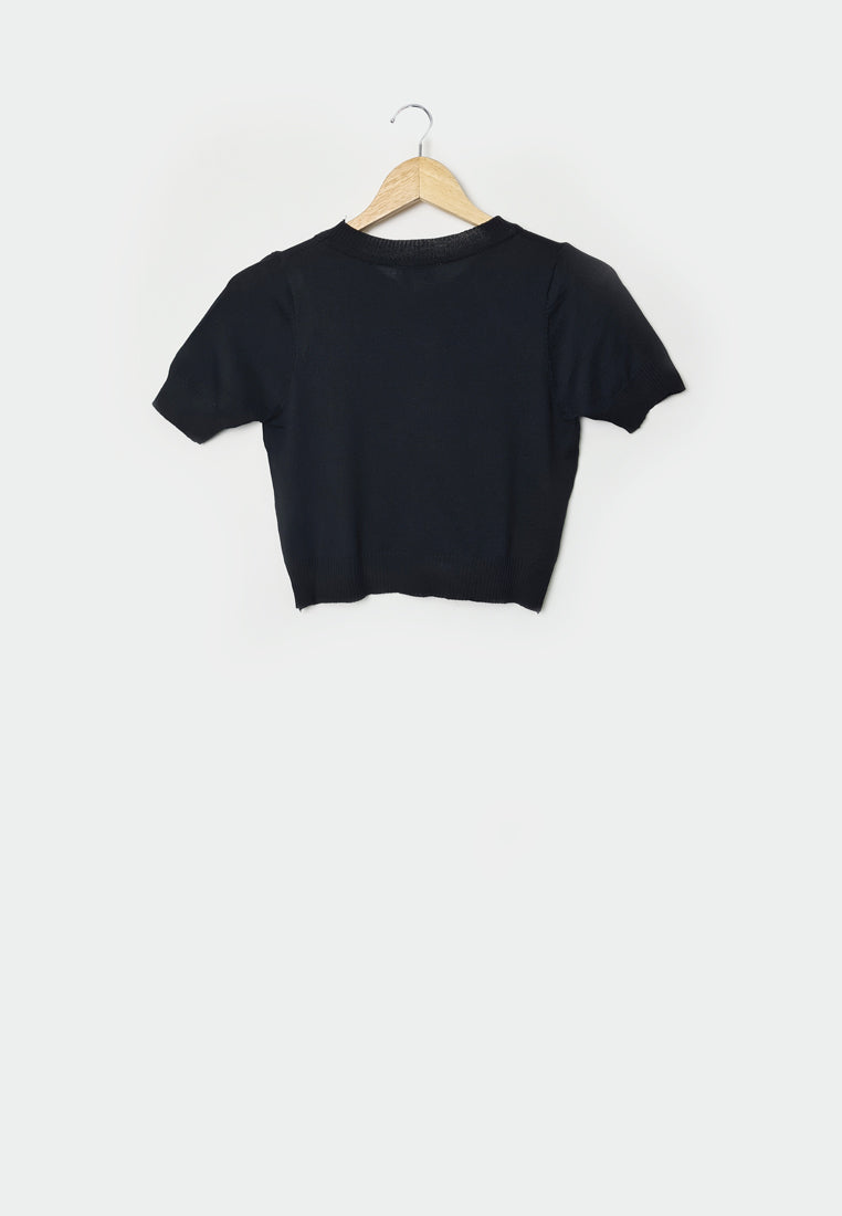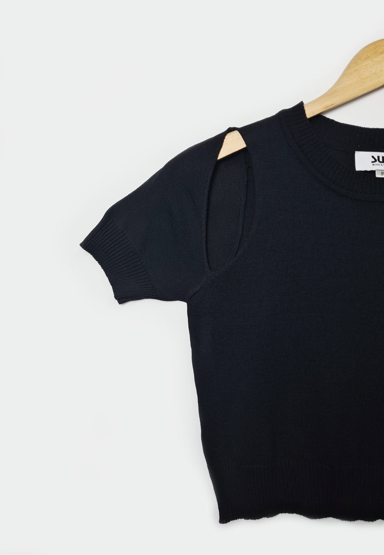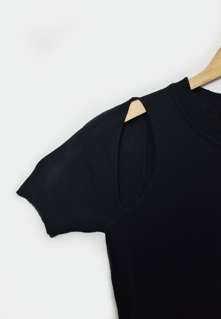 Women Cold Shoulder Short-Sleeve Blouse - Black - F1W168