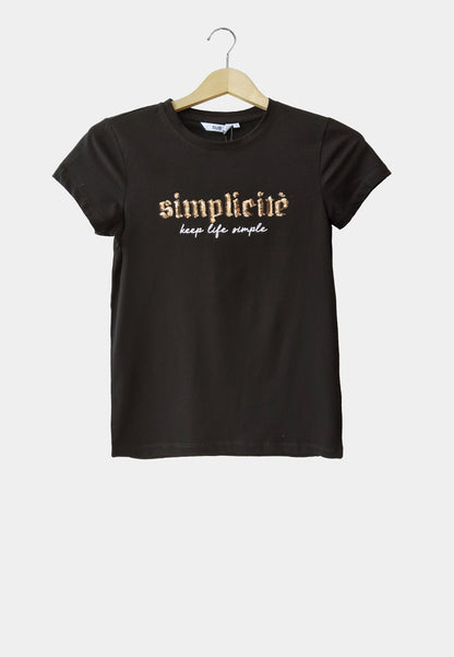 Women Short-Sleeve Graphic Tee - Black - H1W189