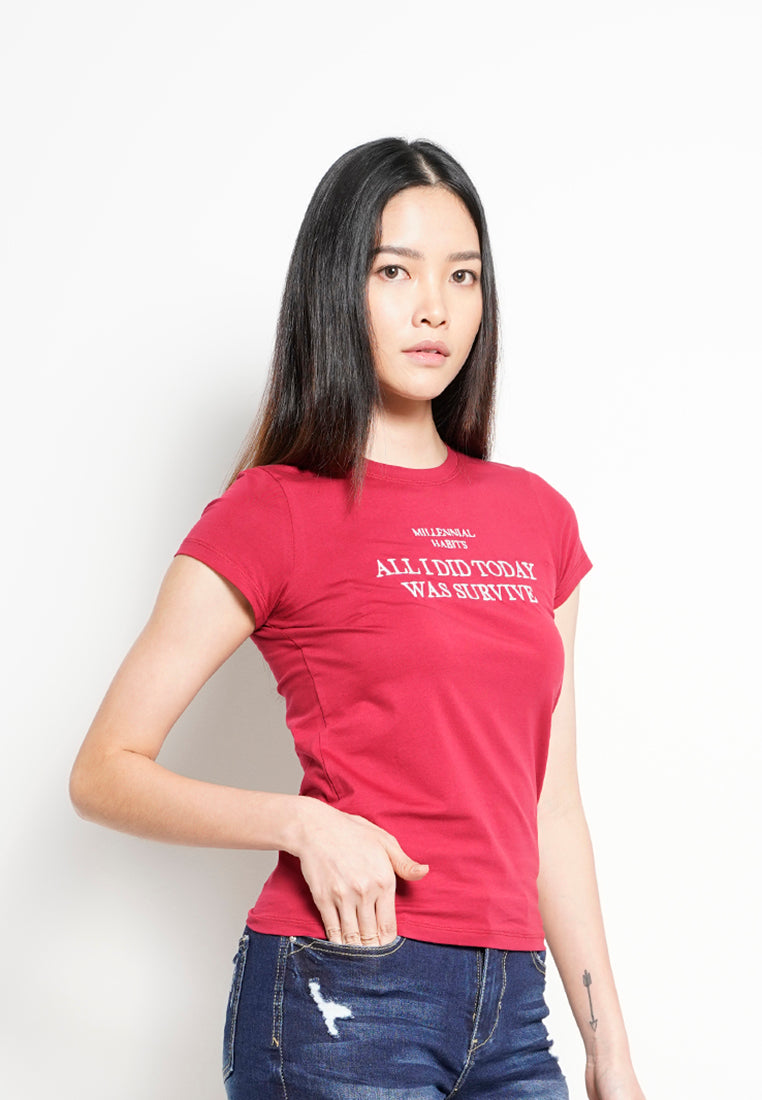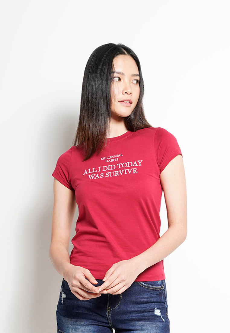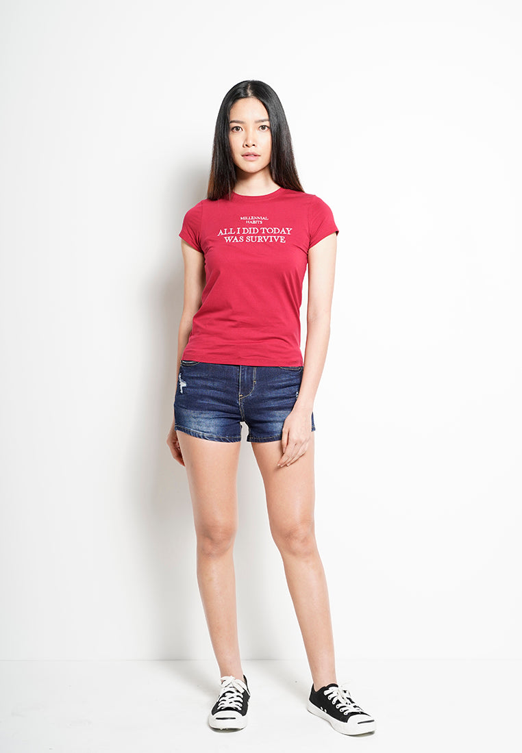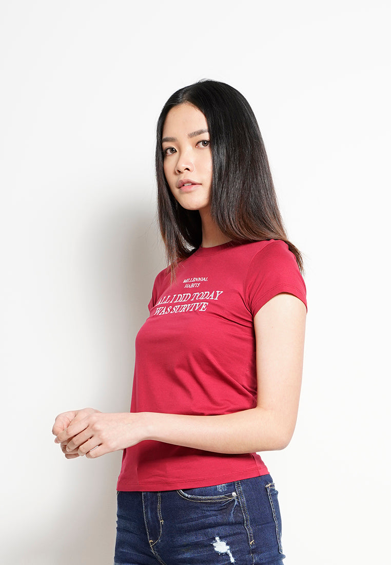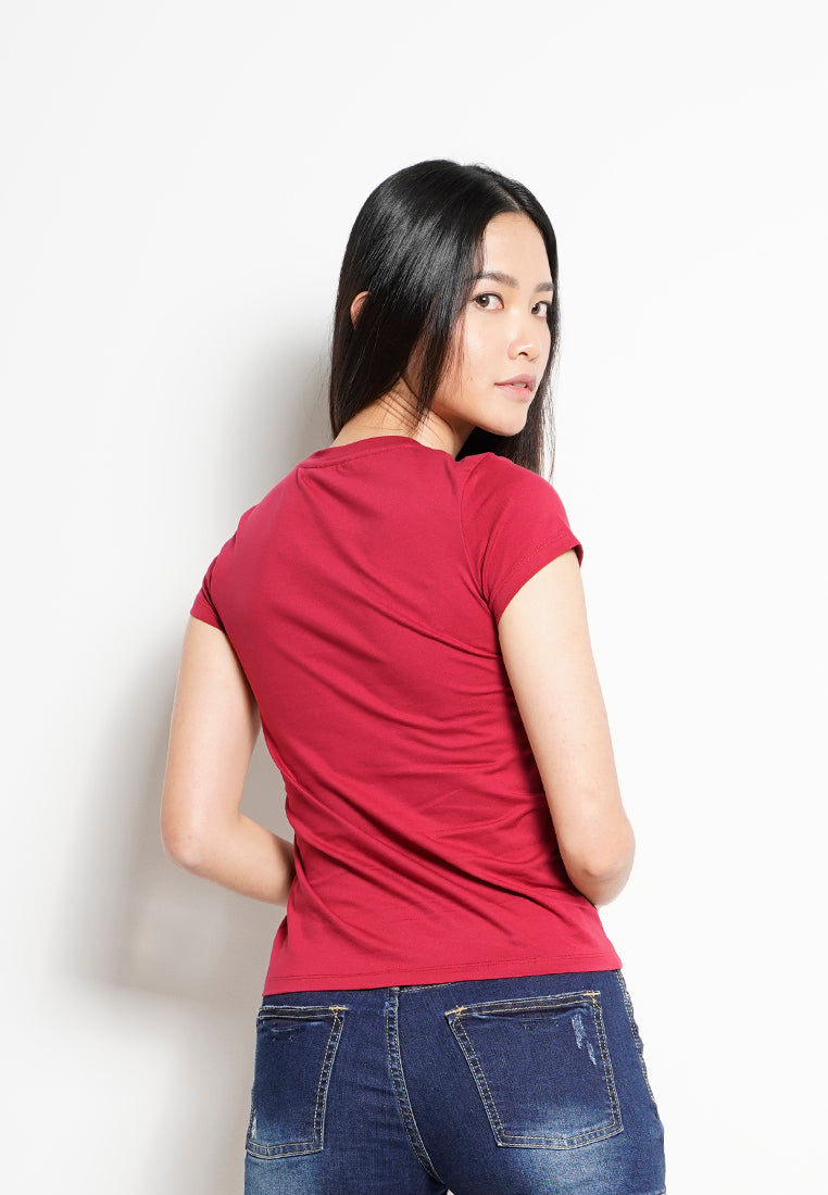 Women Short Sleeve Graphic Tee - RED -H0W906