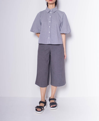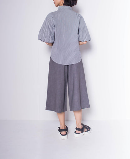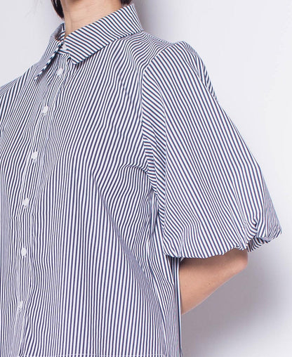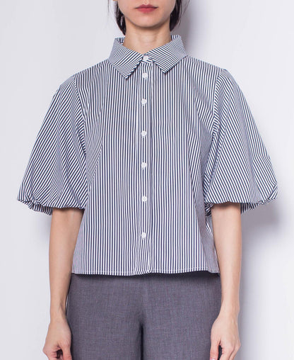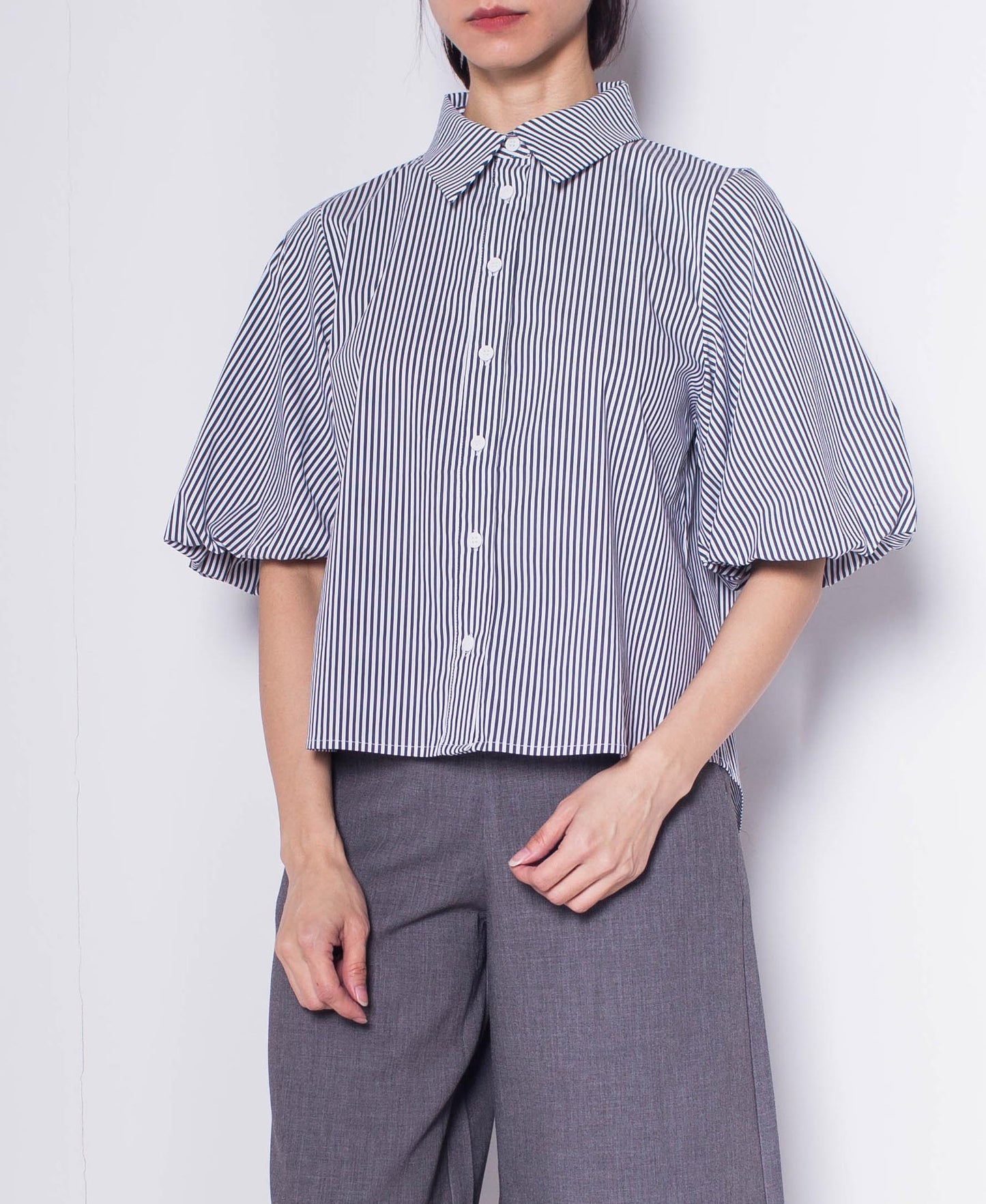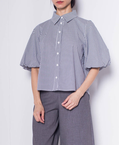 Women Striped Single Breasted Lantern Sleeve Blouse
