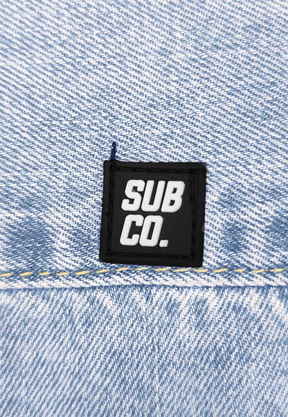 Men Oversized Short-Sleeve Denim Shirt - Light Blue - 410259