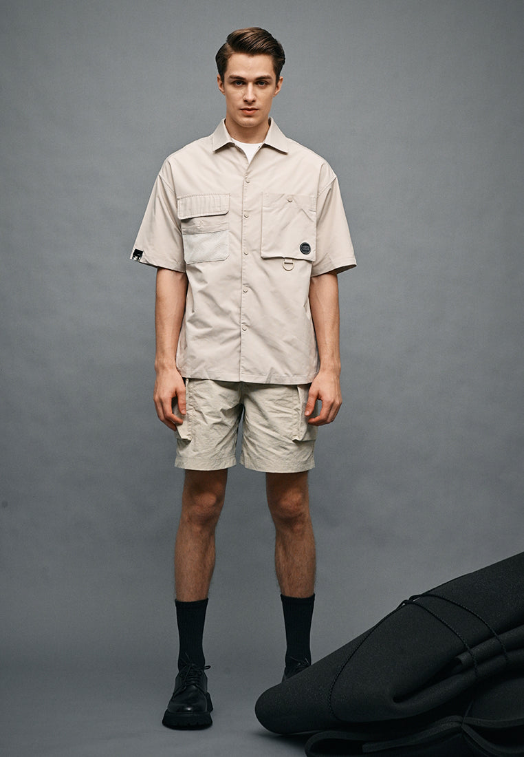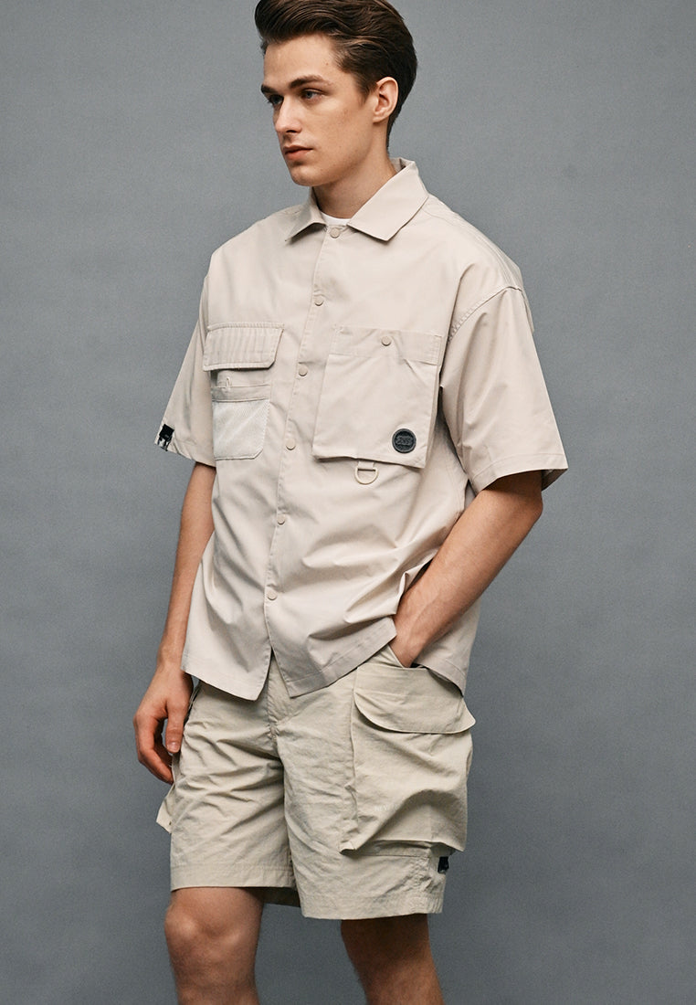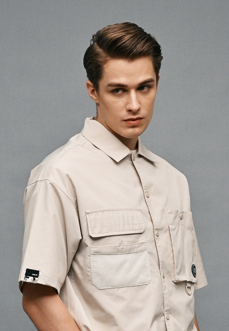 Men Oversized Short-Sleeve Shirt - Light Khaki - 410331