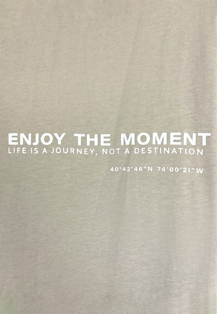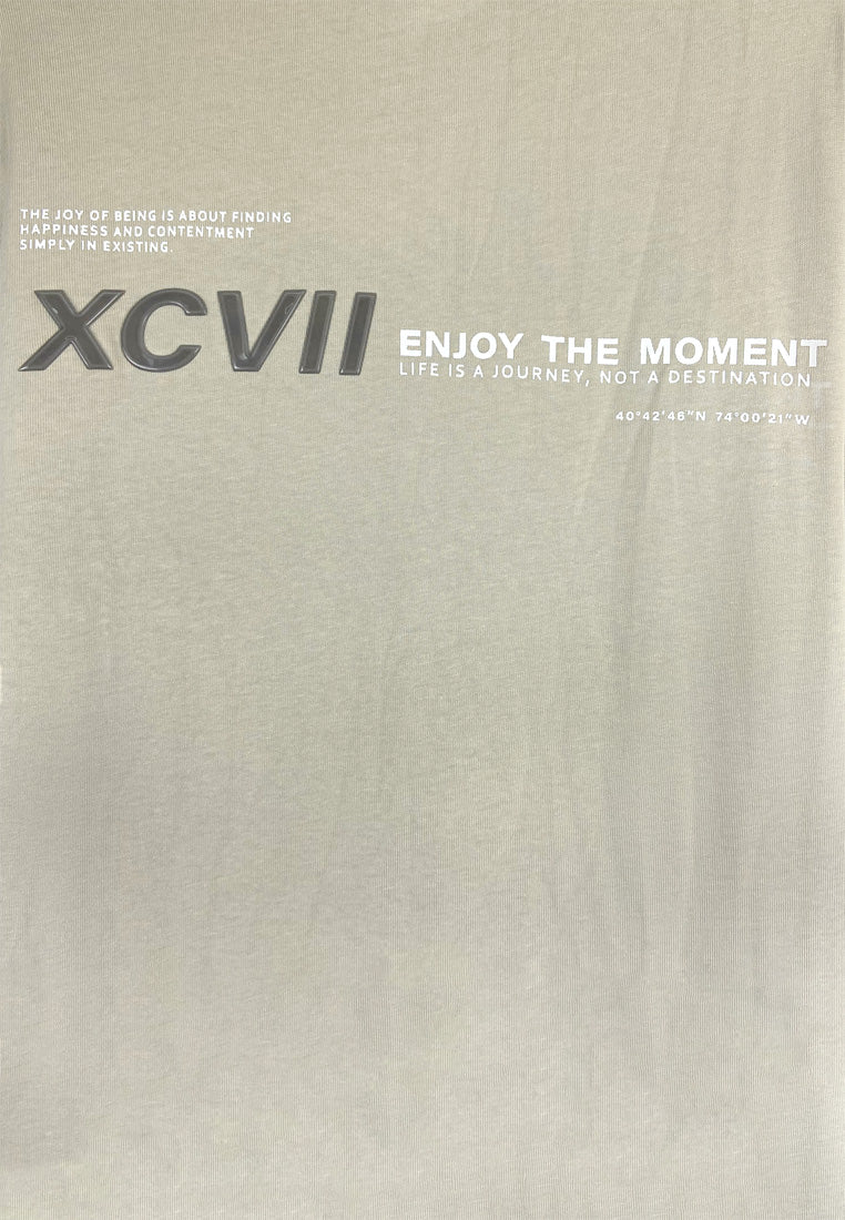 - Back Slogan with " XCVII " , " THE JOY OF BEING IS ABOUT FINDING HAPPINESS AND CONTENTMENT SIMPLY IN EXISTING. " , " ENJOY THE MOMENT LIFE IS A JOURNEY , NOT A DESTINATION "