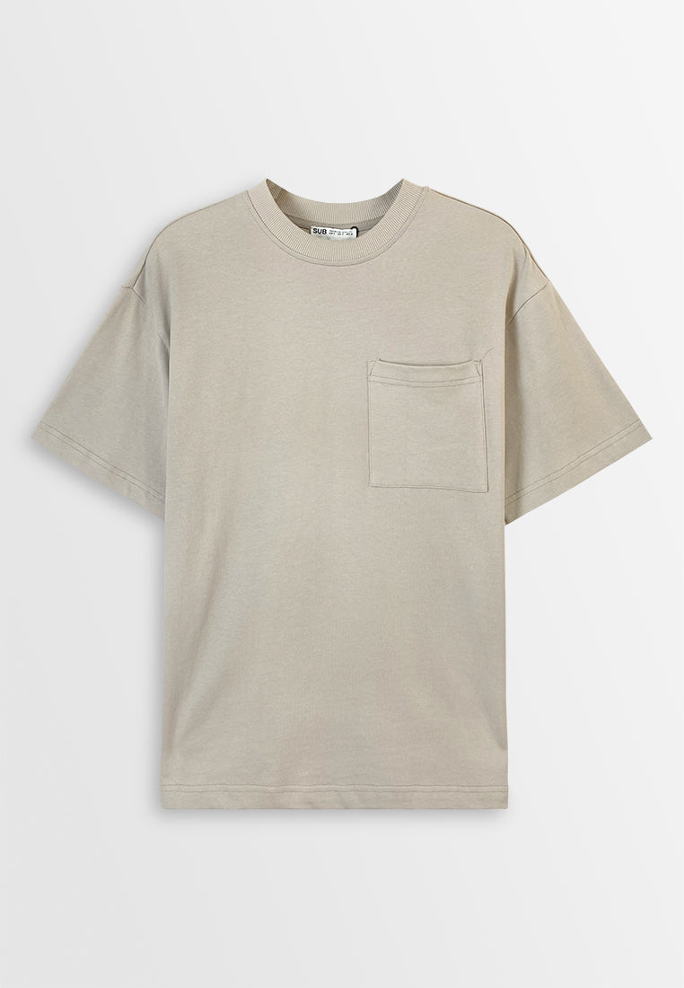 Men Oversized T-Shirt Short Sleeve - Khaki - 410362