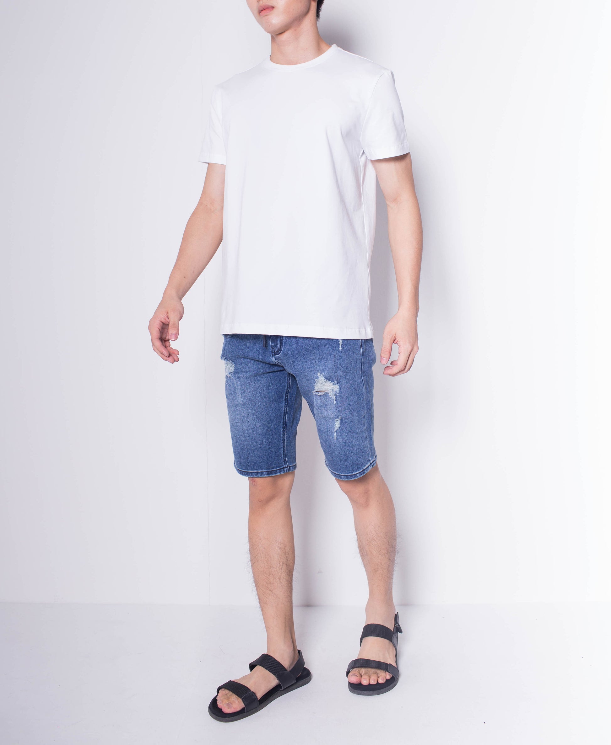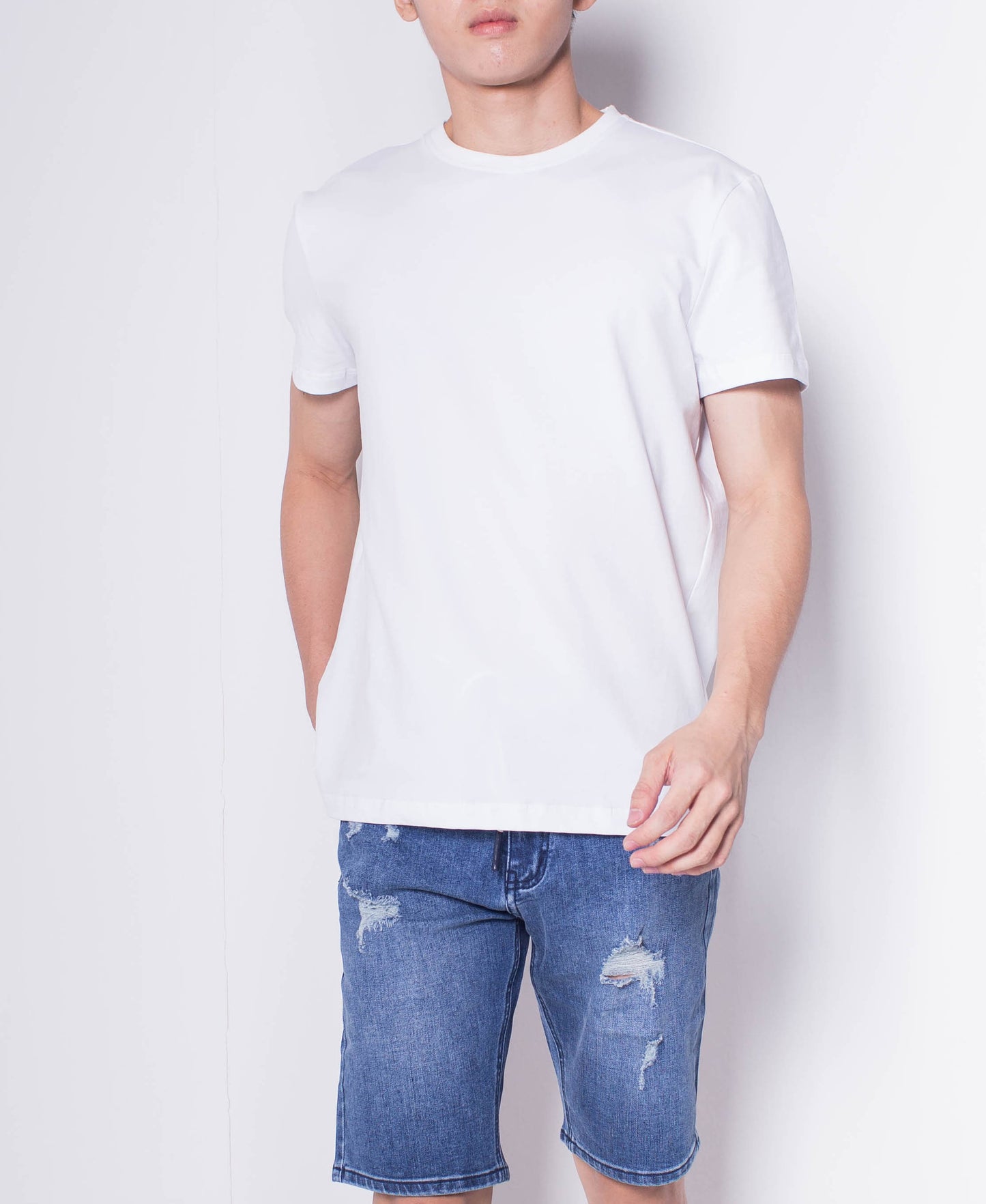 Men Short Sleeve Basic Round Tee - White - H0M931