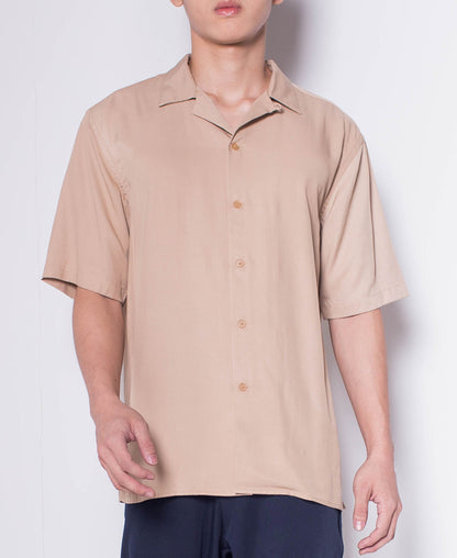 Men Short-Sleeve Camp Collar Shirt - Khaki - H0M636