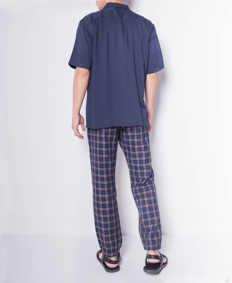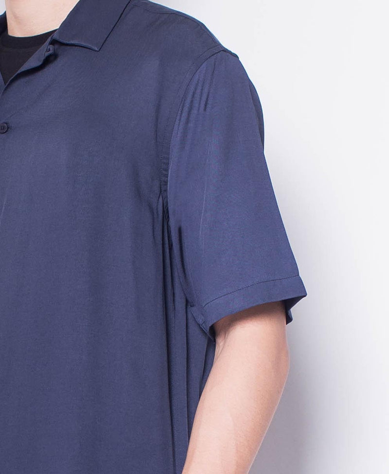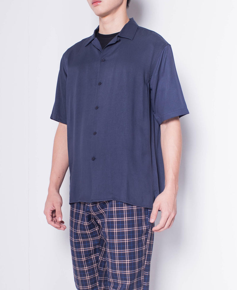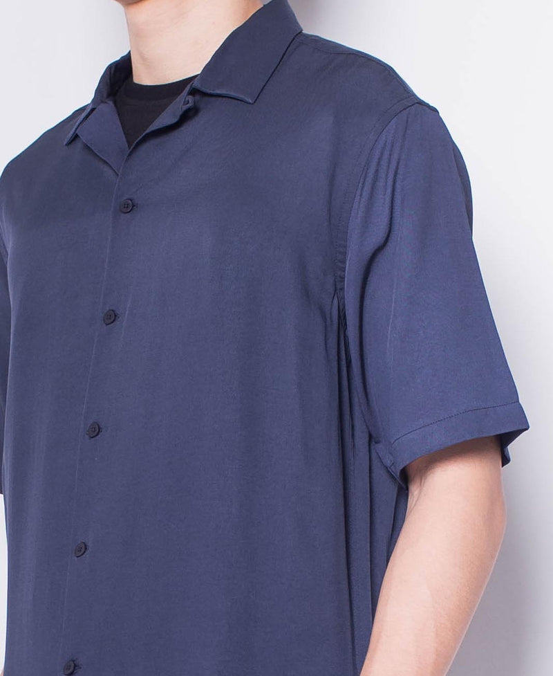Men Short-Sleeve Camp Collar Shirt - Navy - H0M637