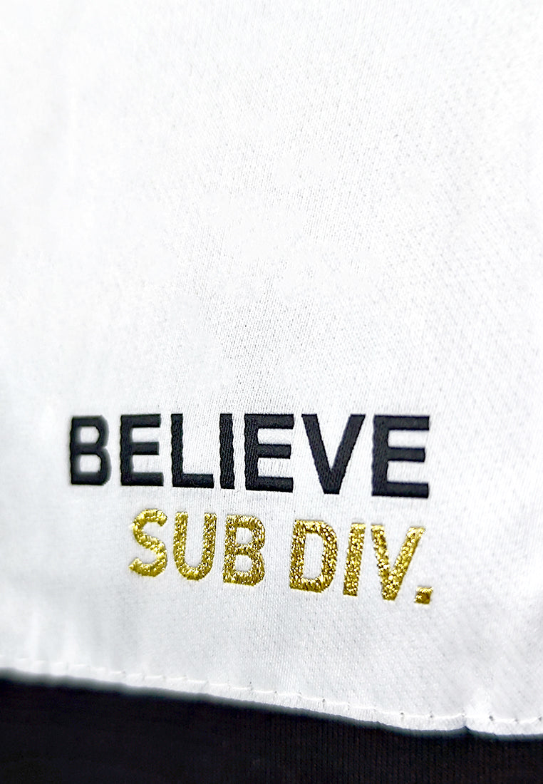- Slogan with " N l Y ", " BELIEVE SUB DIV. "