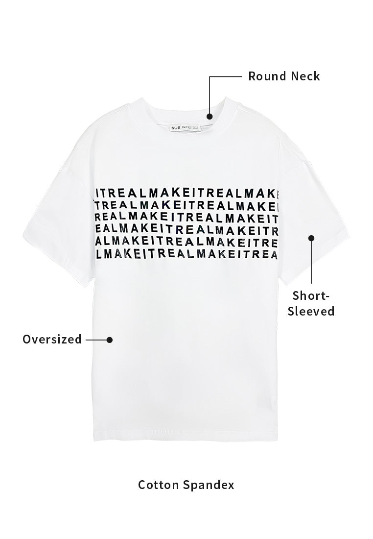 Men Oversized T-Shirt Short Sleeve - White - 310096