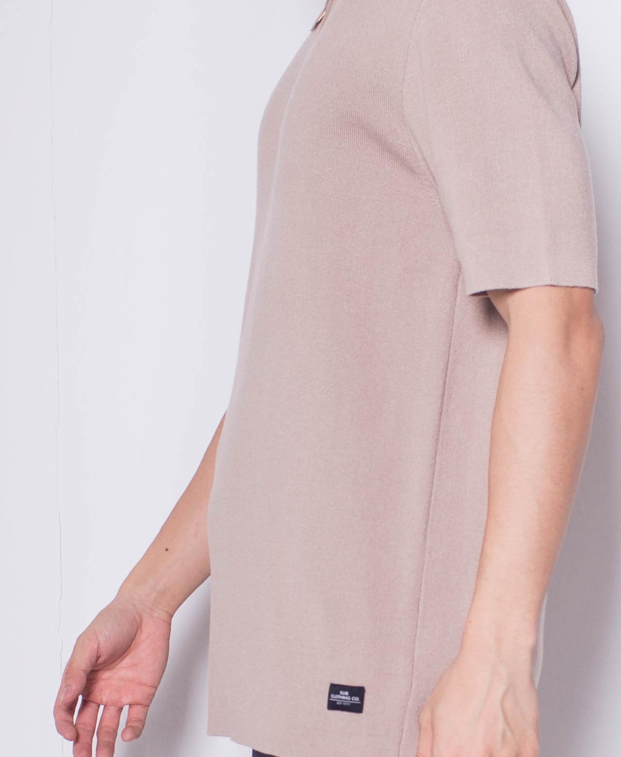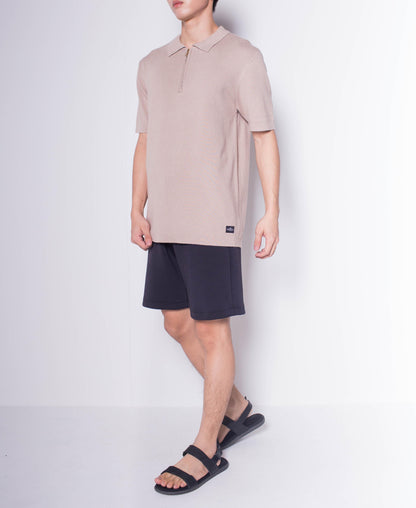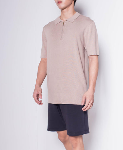 Men Short-Sleeve Knit Zip Polo Shirt - Khaki - H0M635
