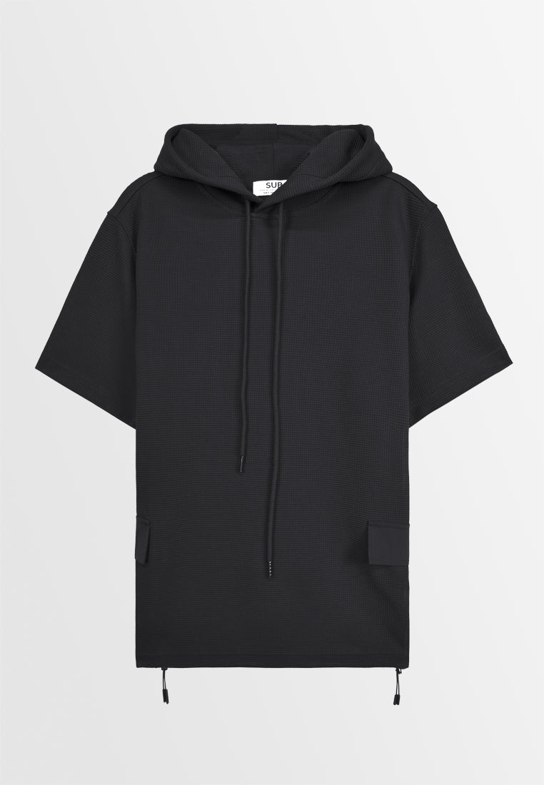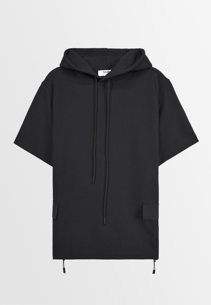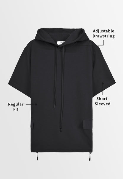 Men Short-Sleeve Sweatshirt Hoodie - Black - 410007