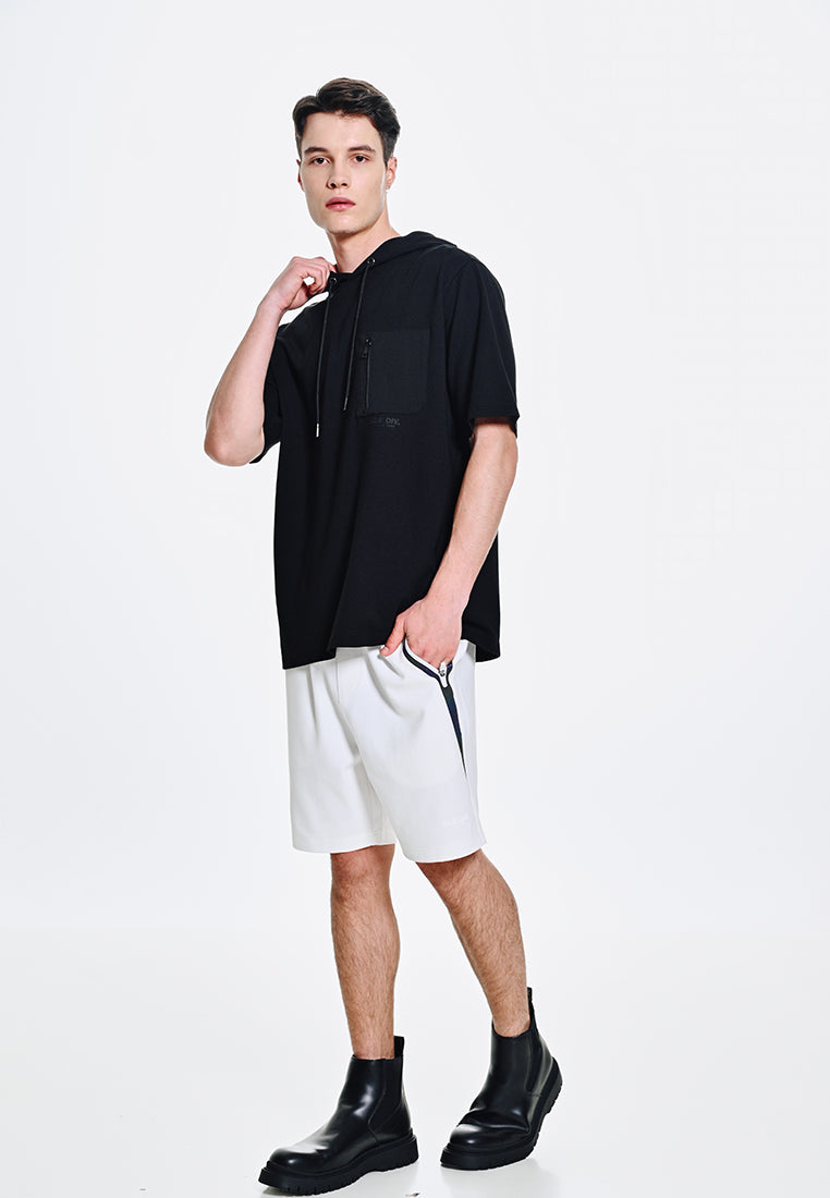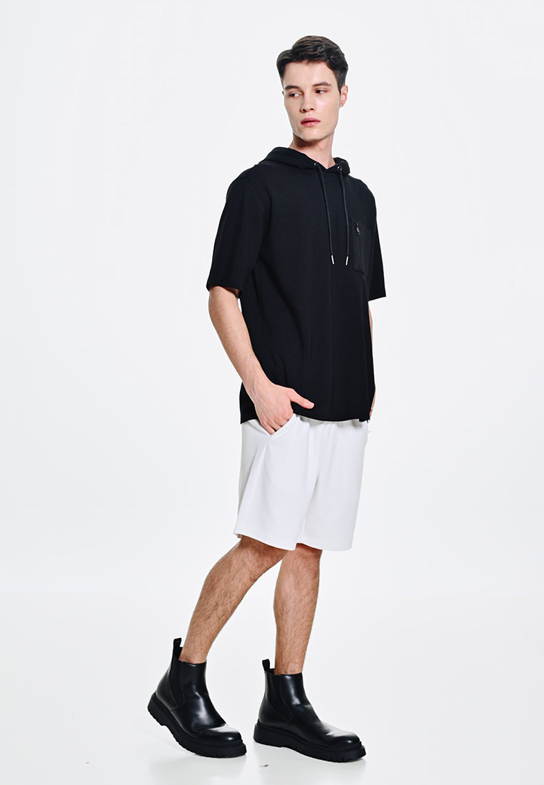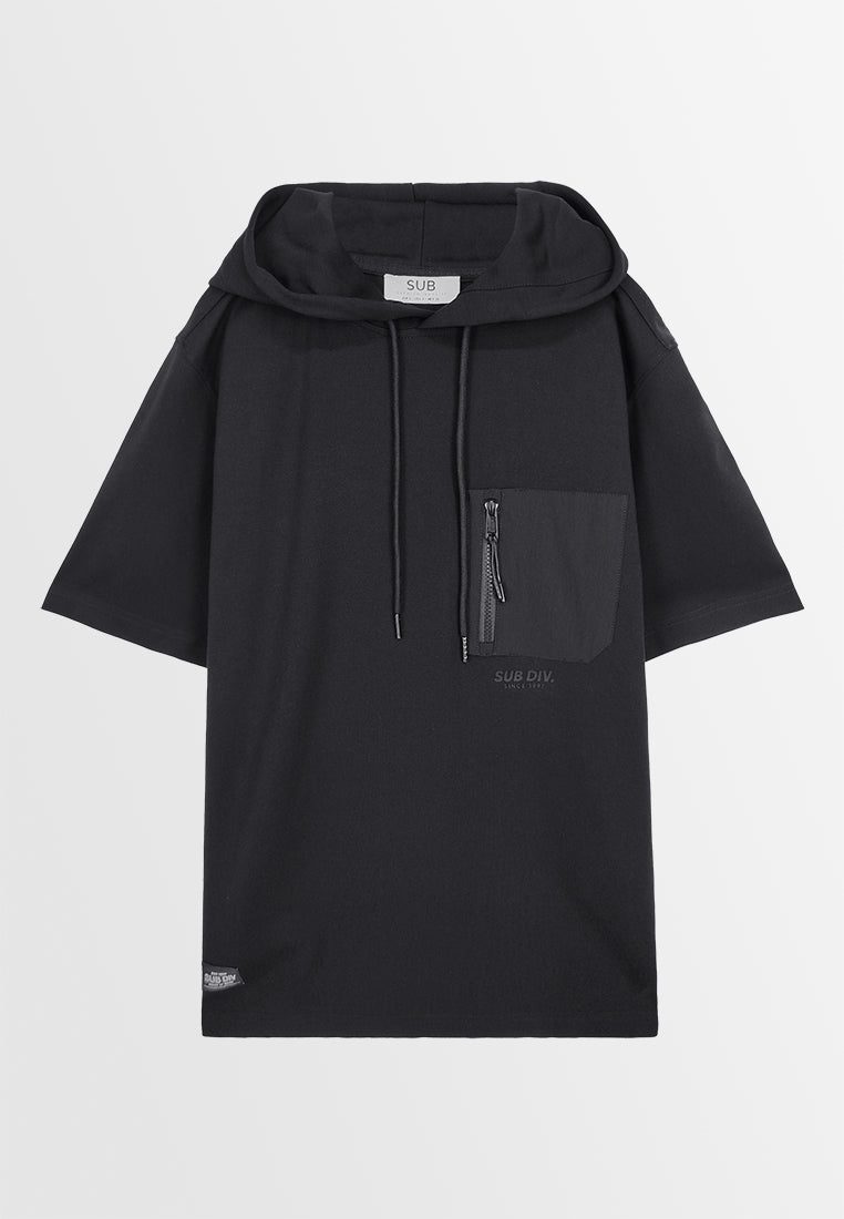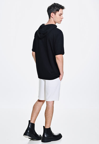 Men Short-Sleeve Sweatshirt Hoodie - Black - 410045