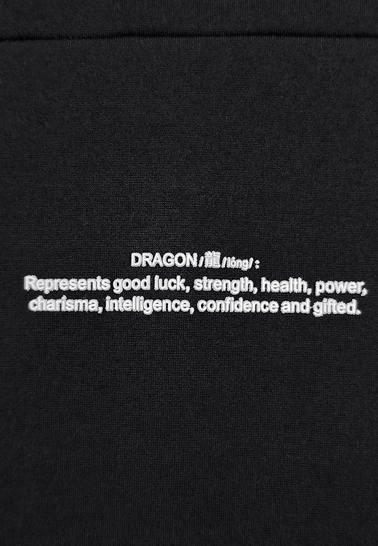 - Back Slogan with " DRAGON / 龍 / long : Represents good luck, strength, health, power, charisma, intelligence, confidence and gifted. "