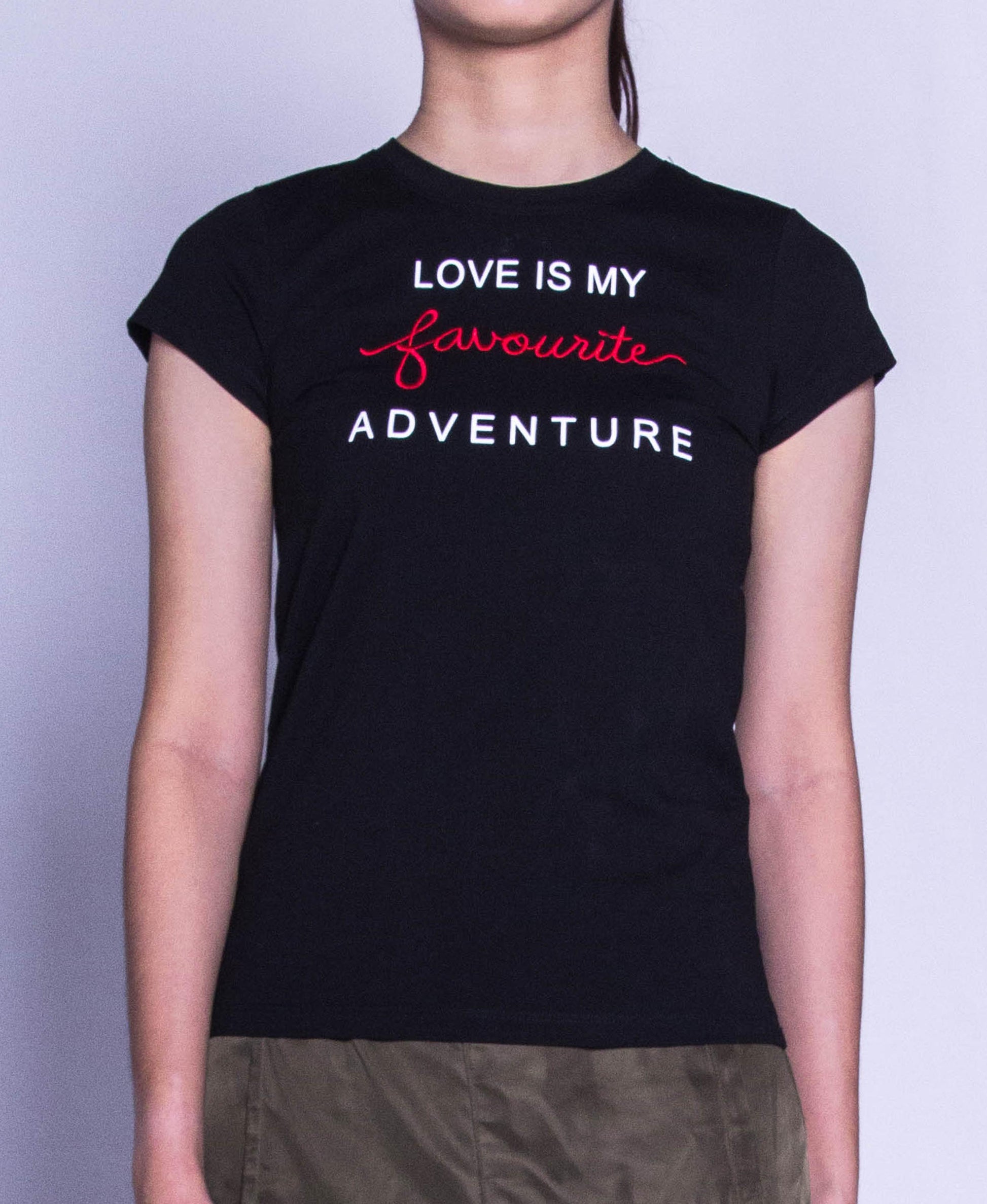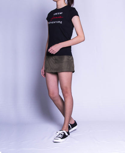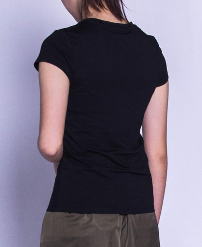 Women Short Sleeve Graphic Tee - Black - F9W200