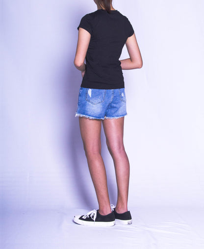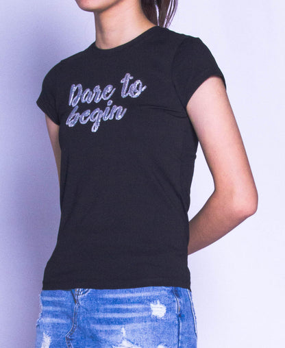 Women Short Sleeve Graphic Tee - Black - H9W383