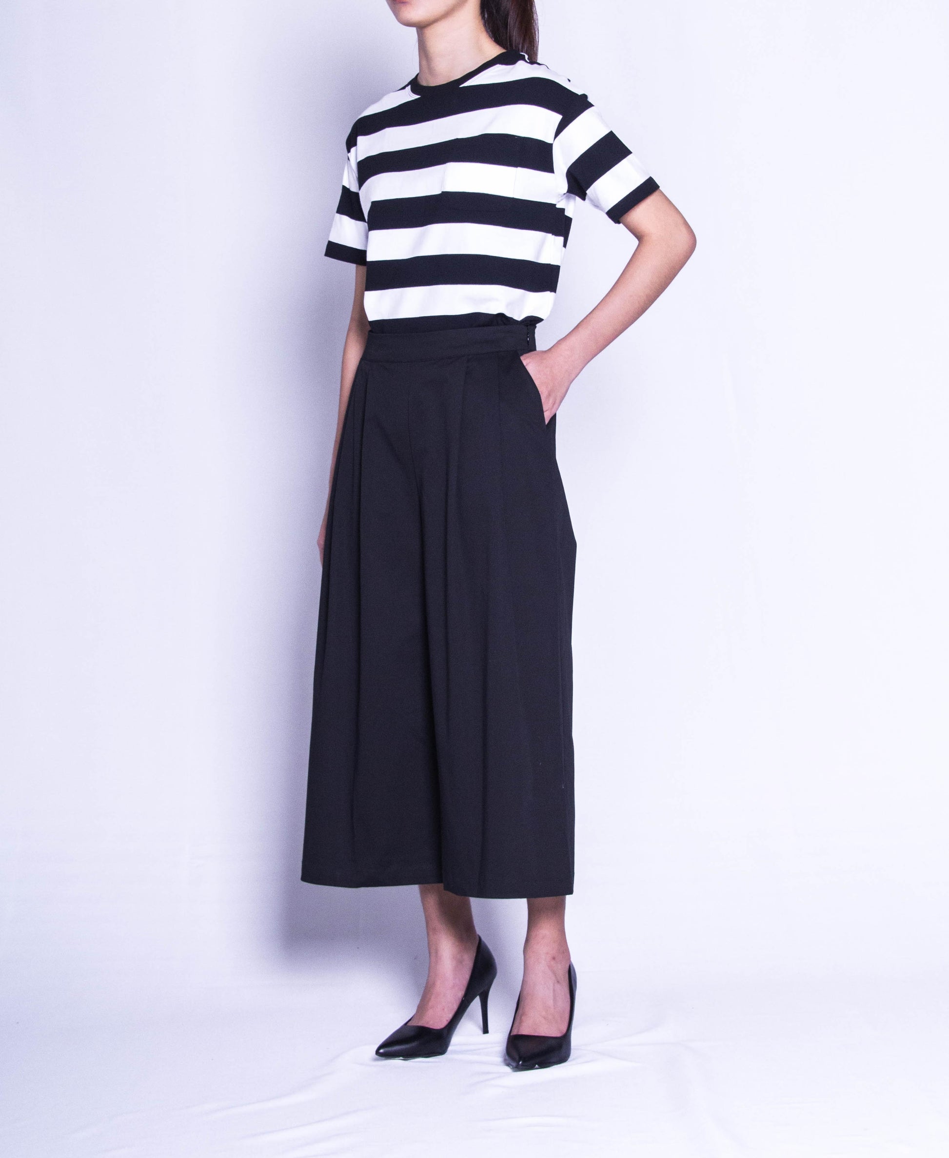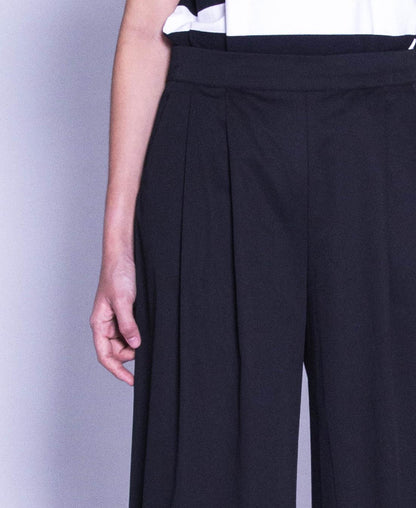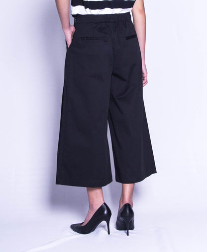 Women Wide Leg Long Pants - Black - F9W132