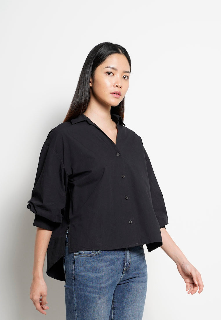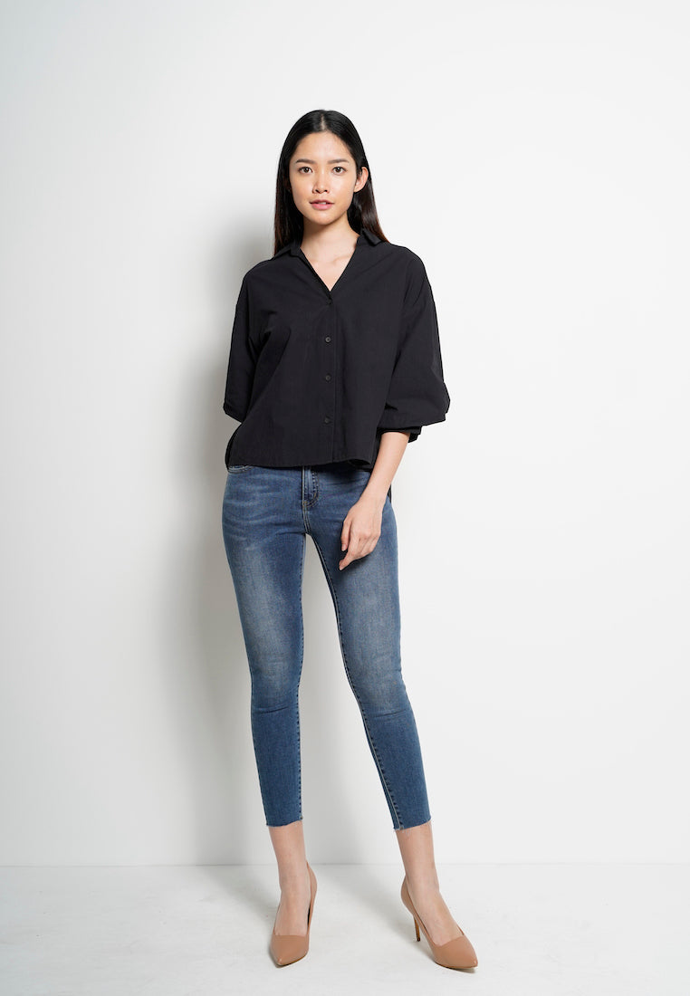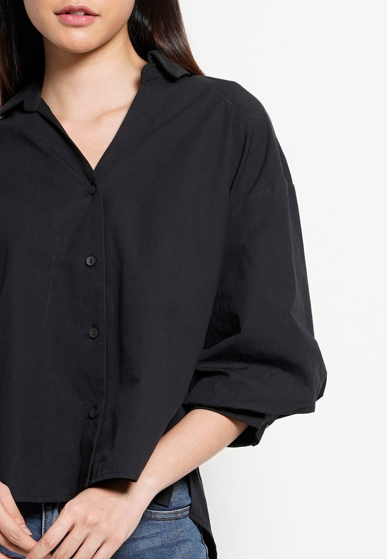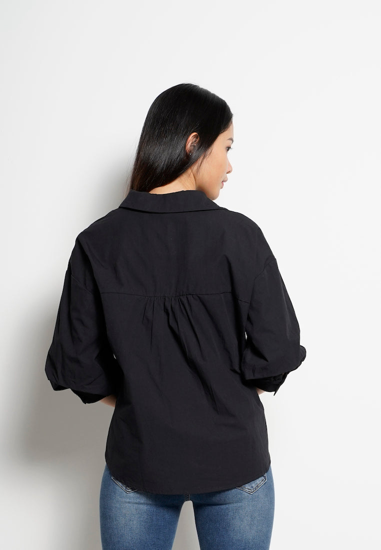 Women Bishop Sleeve Blouse - Black - H0W833