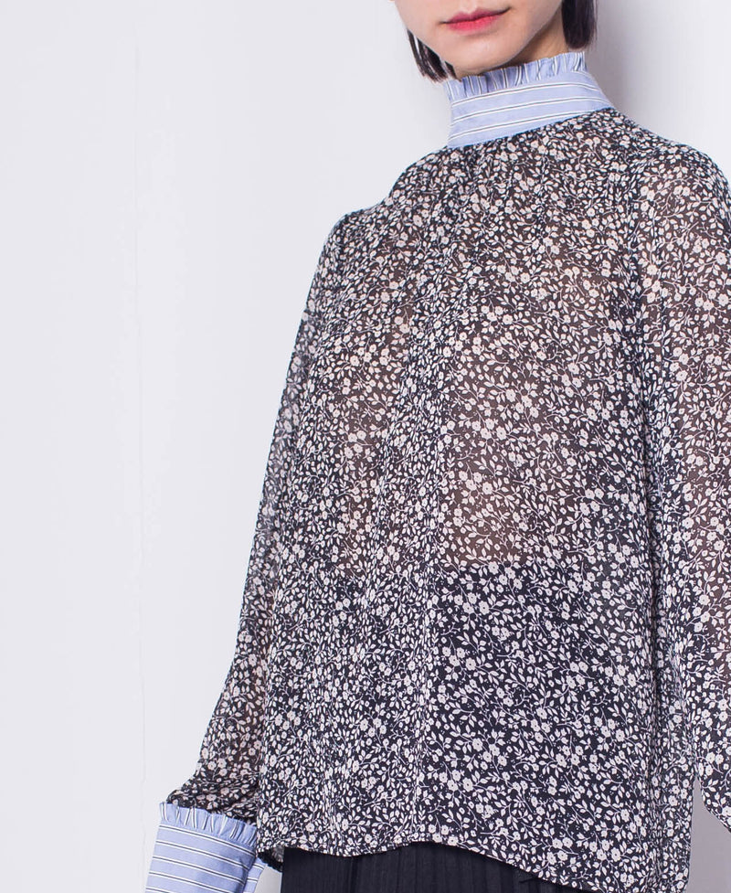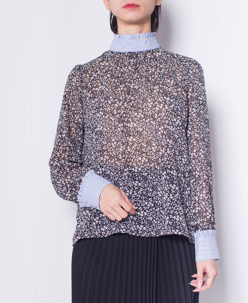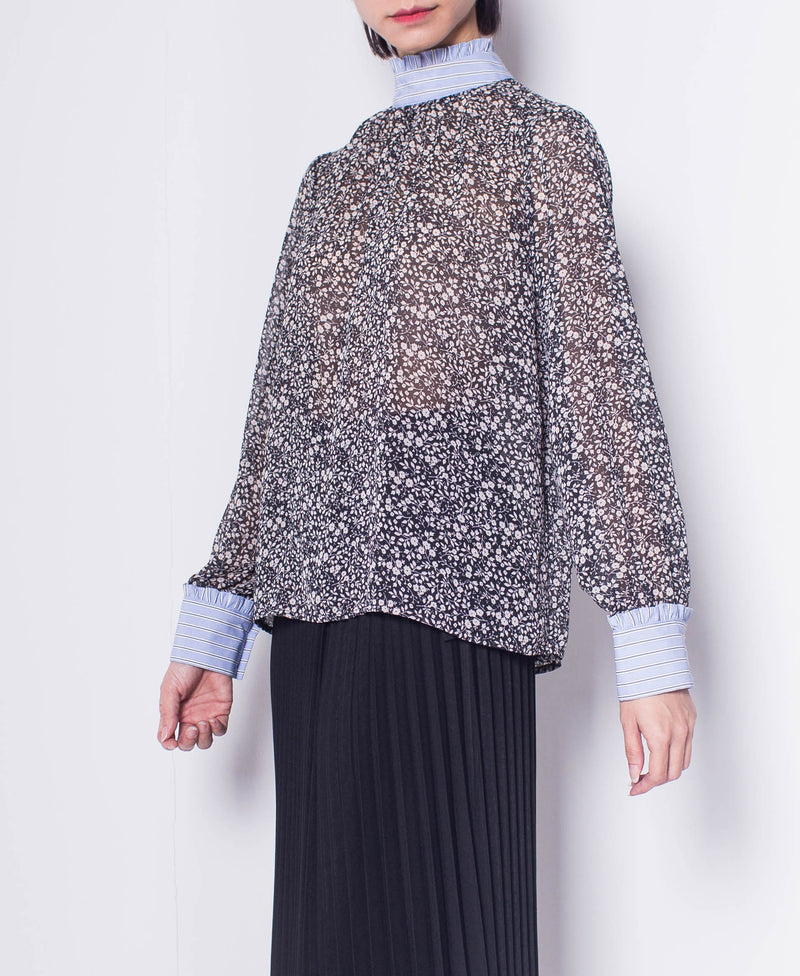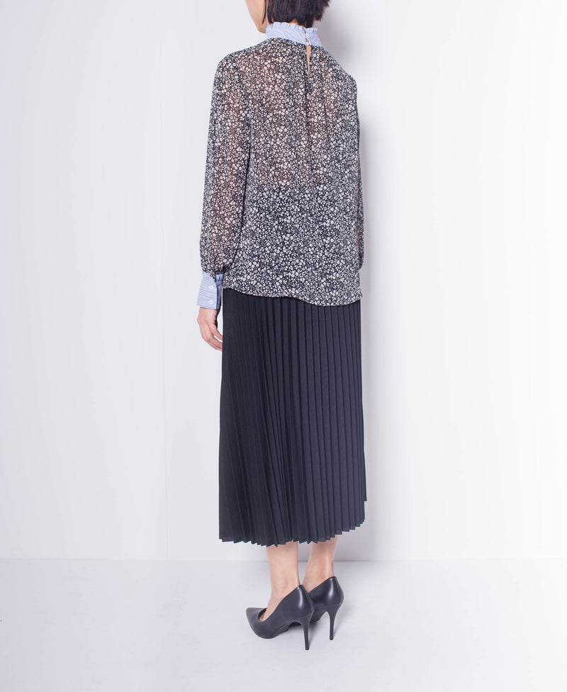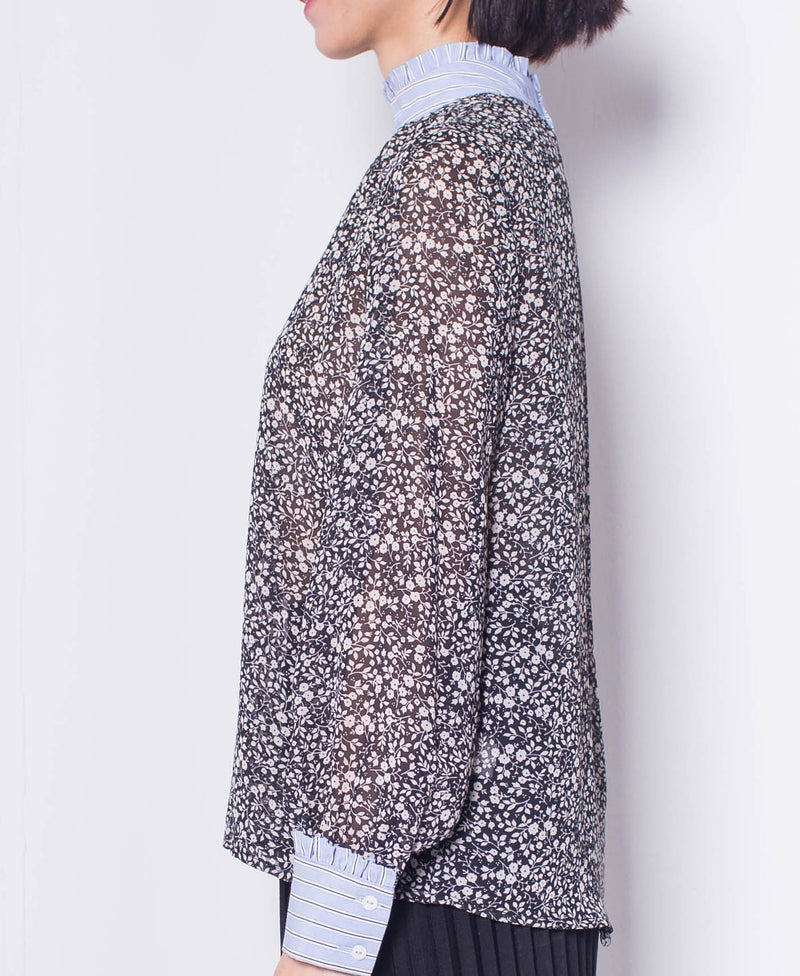 Women Frills Neck Long-Sleeve Blouse - Black - H0W750
