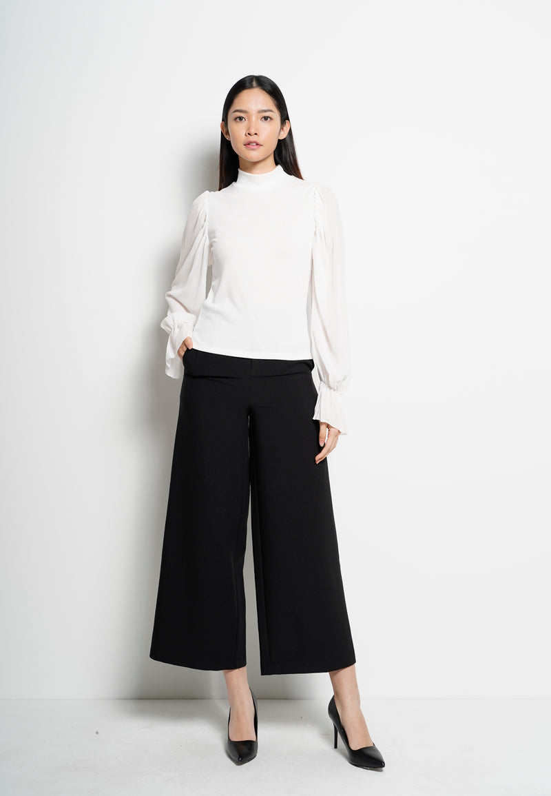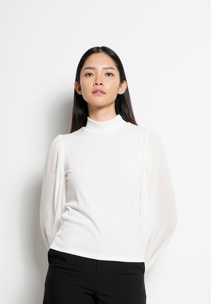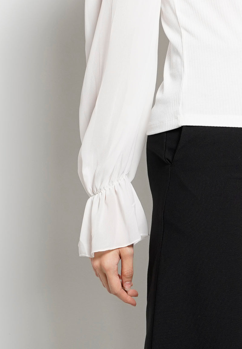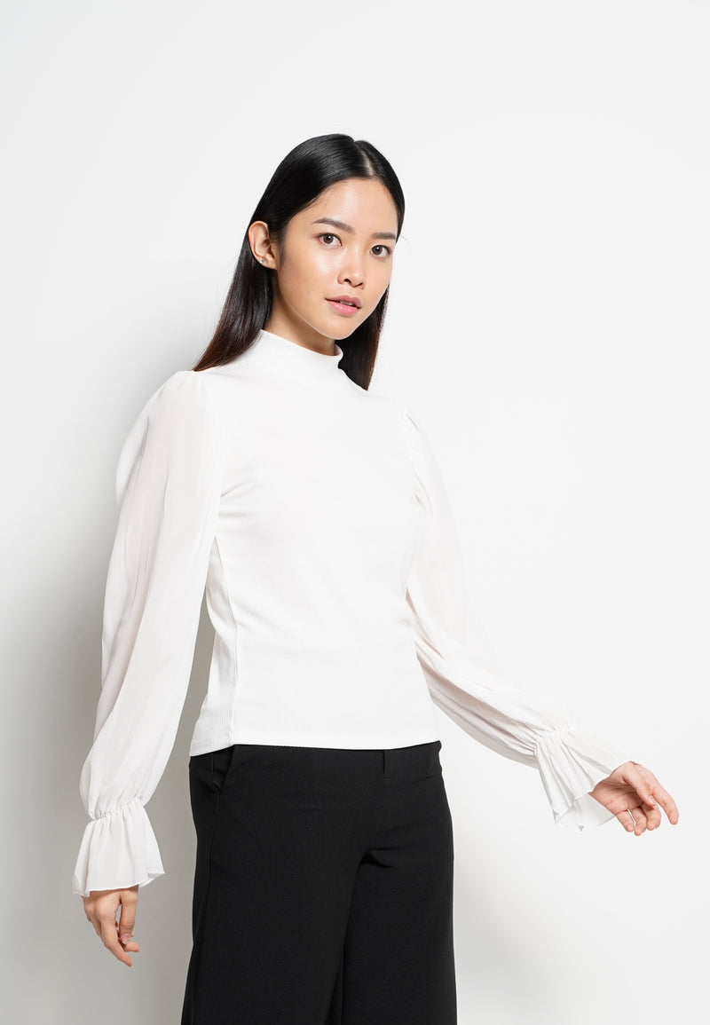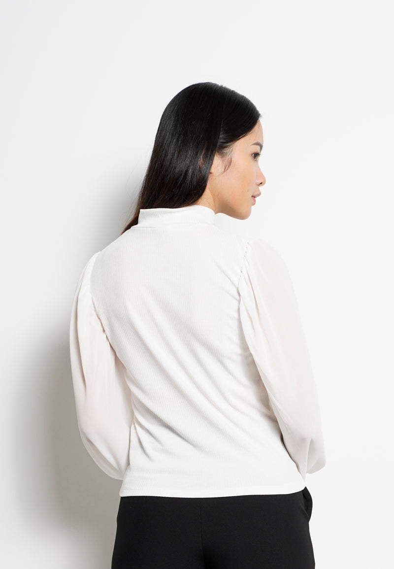 Women High Neck Long-Sleeve Blouse - White - H0W748