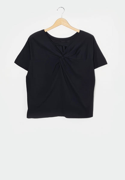 Women Knit Short-Sleeve Blouse - Black - M1W130