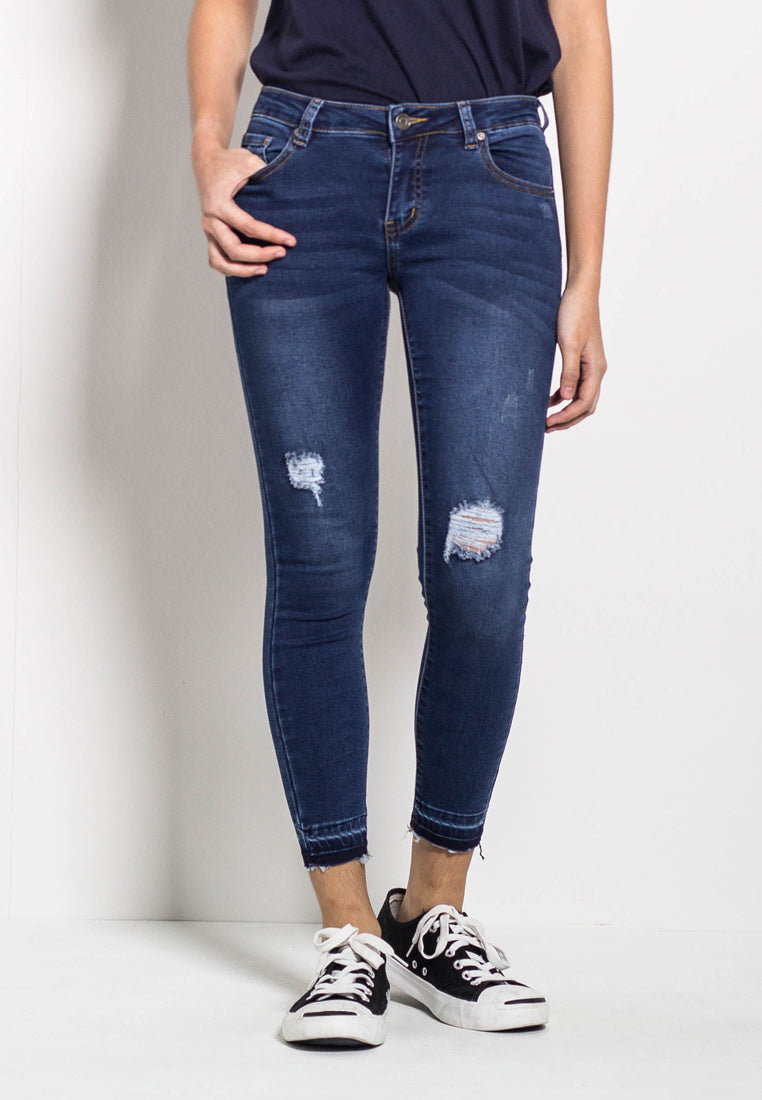 Women Long Mid Rise Skinny Fit Jeans - Blue - M0W516
