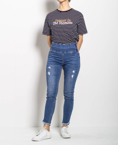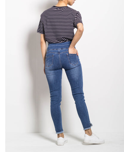 Women Long Mid Rise Skinny Fit Jeans - Blue - M0W520