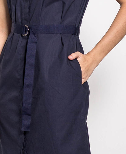Women Long Shirt Dress With Belt - Navy - H0W740