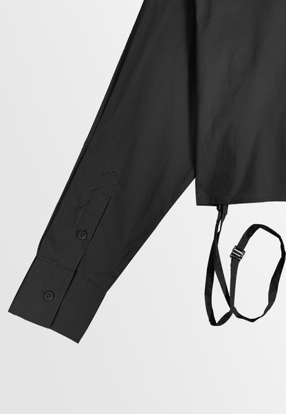 Women Long-Sleeve Crop Shirt - Black - 410275