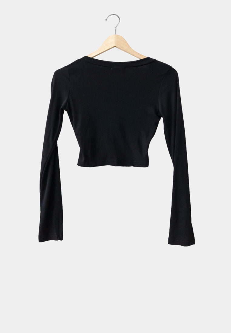 Women Long-Sleeve Cross Cut - Black - H1W252