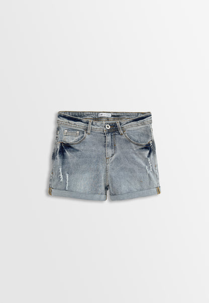 Women Ripped Short Jeans - Light Blue - F2W377