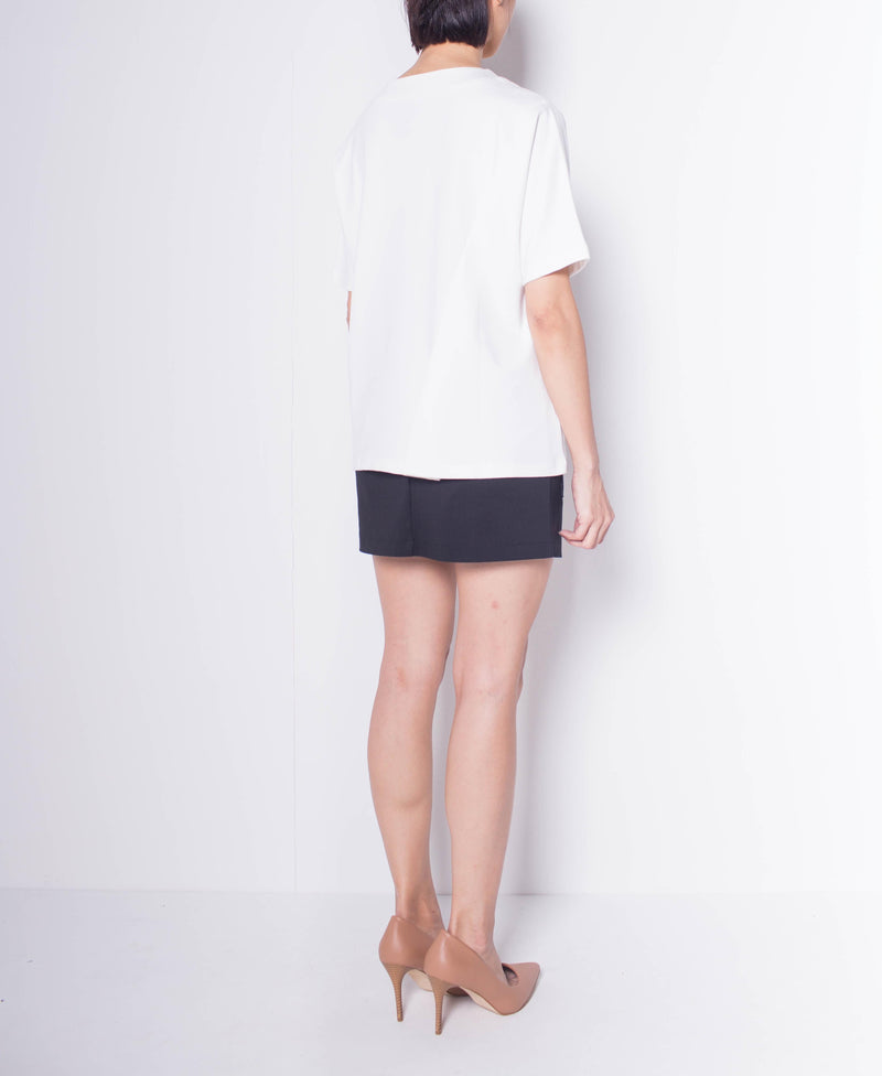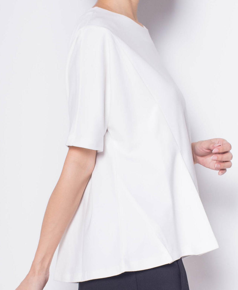 Women Round Neck Short-Sleeve Blouse - White - H0W940
