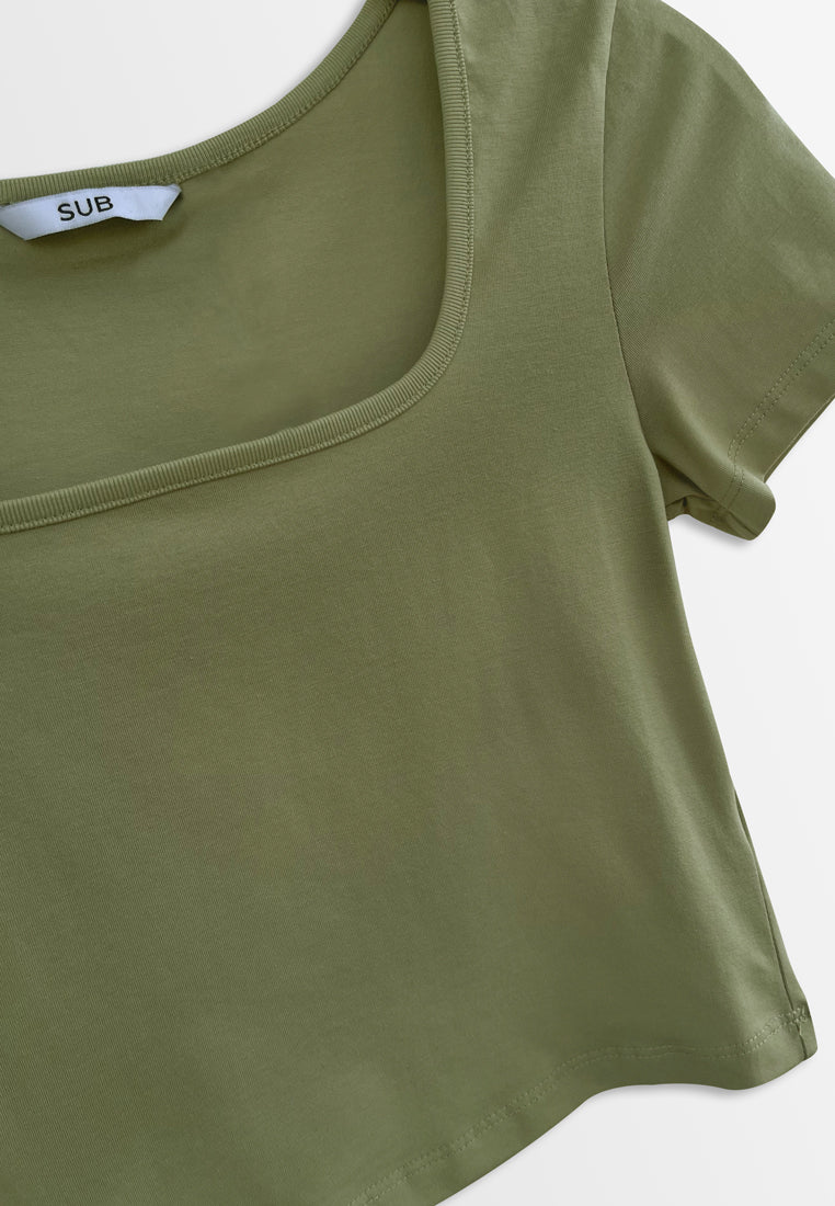 Women Short-Sleeve Crop Top Tee - Green - H2W467
