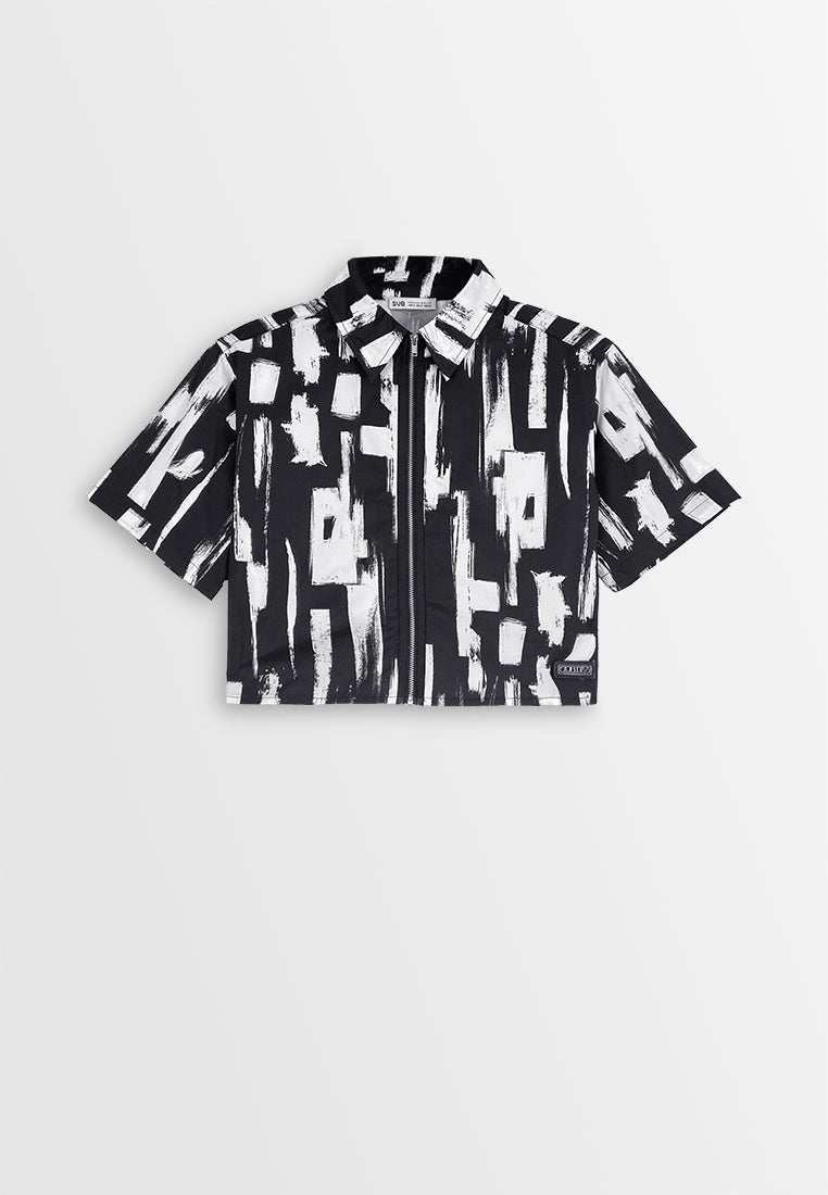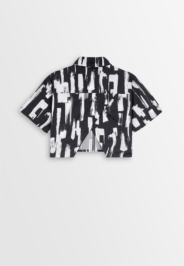 Women Short-Sleeve Cropped Shirt - Black - 410134