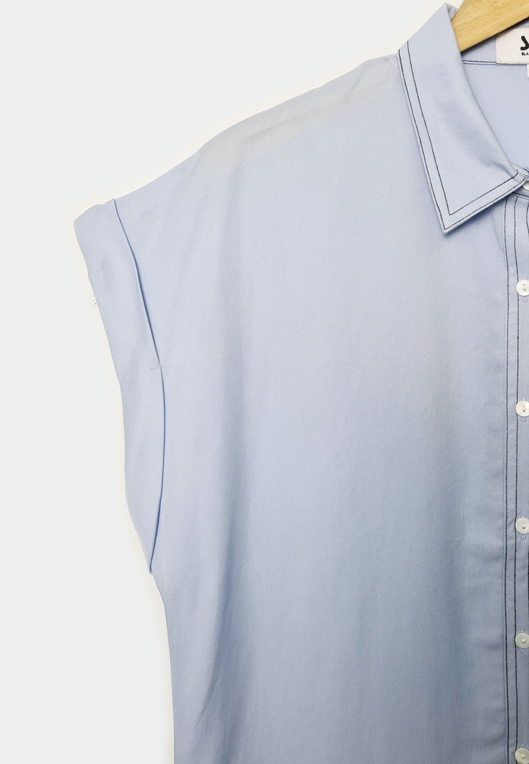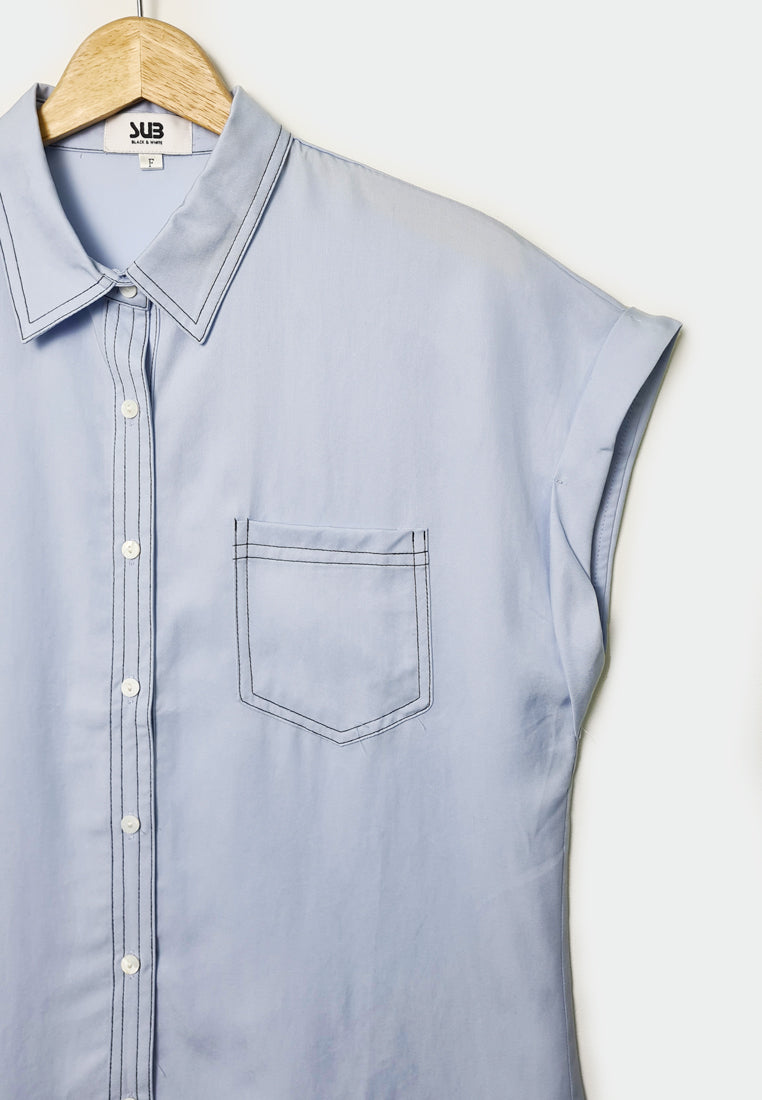 Women Short-Sleeve Denim Shirt - Blue - F1W170
