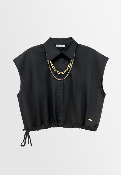 Women Sleeveness Fashion Blouse - Black - H2W663