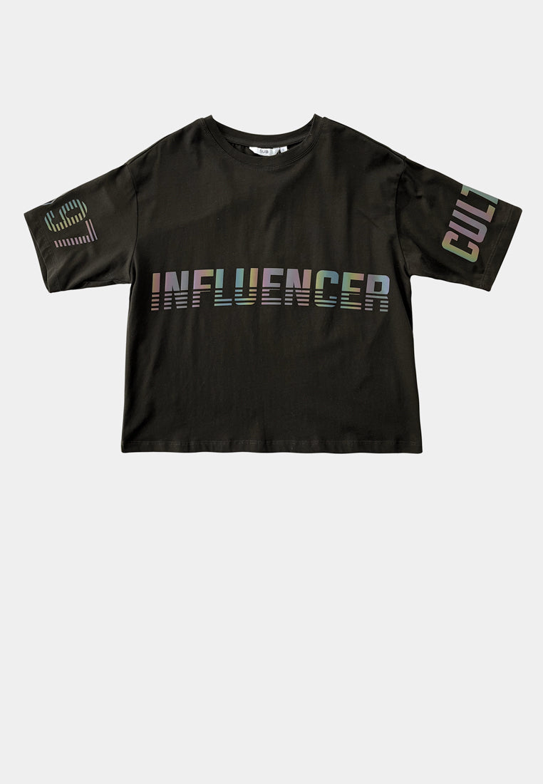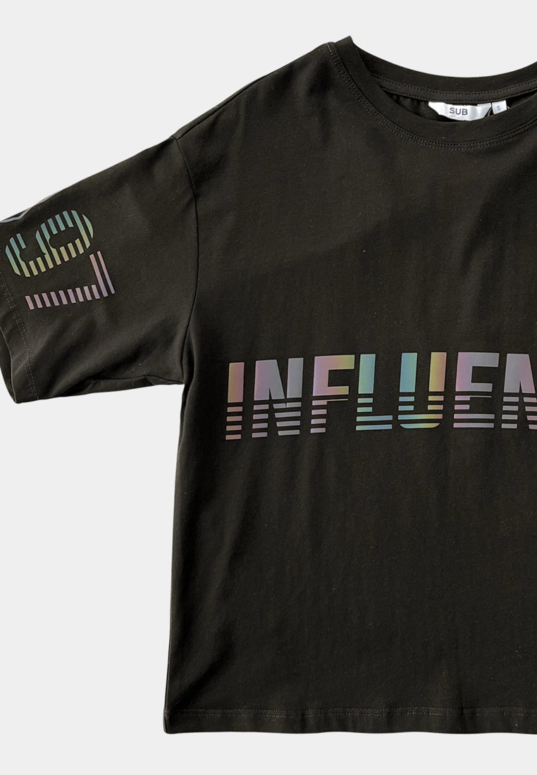 Women Short-Sleeve Fashion Tee - Black - F2W408