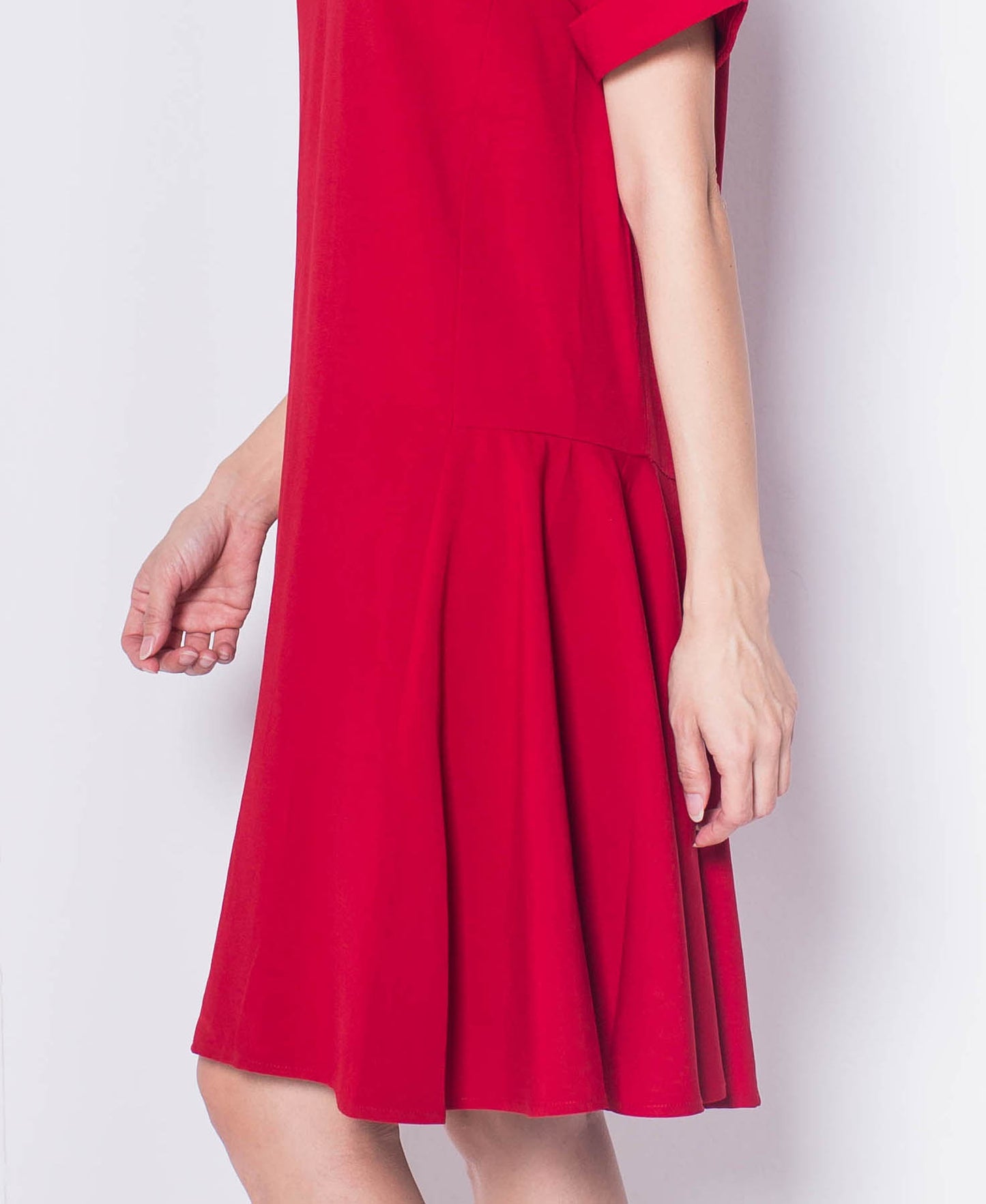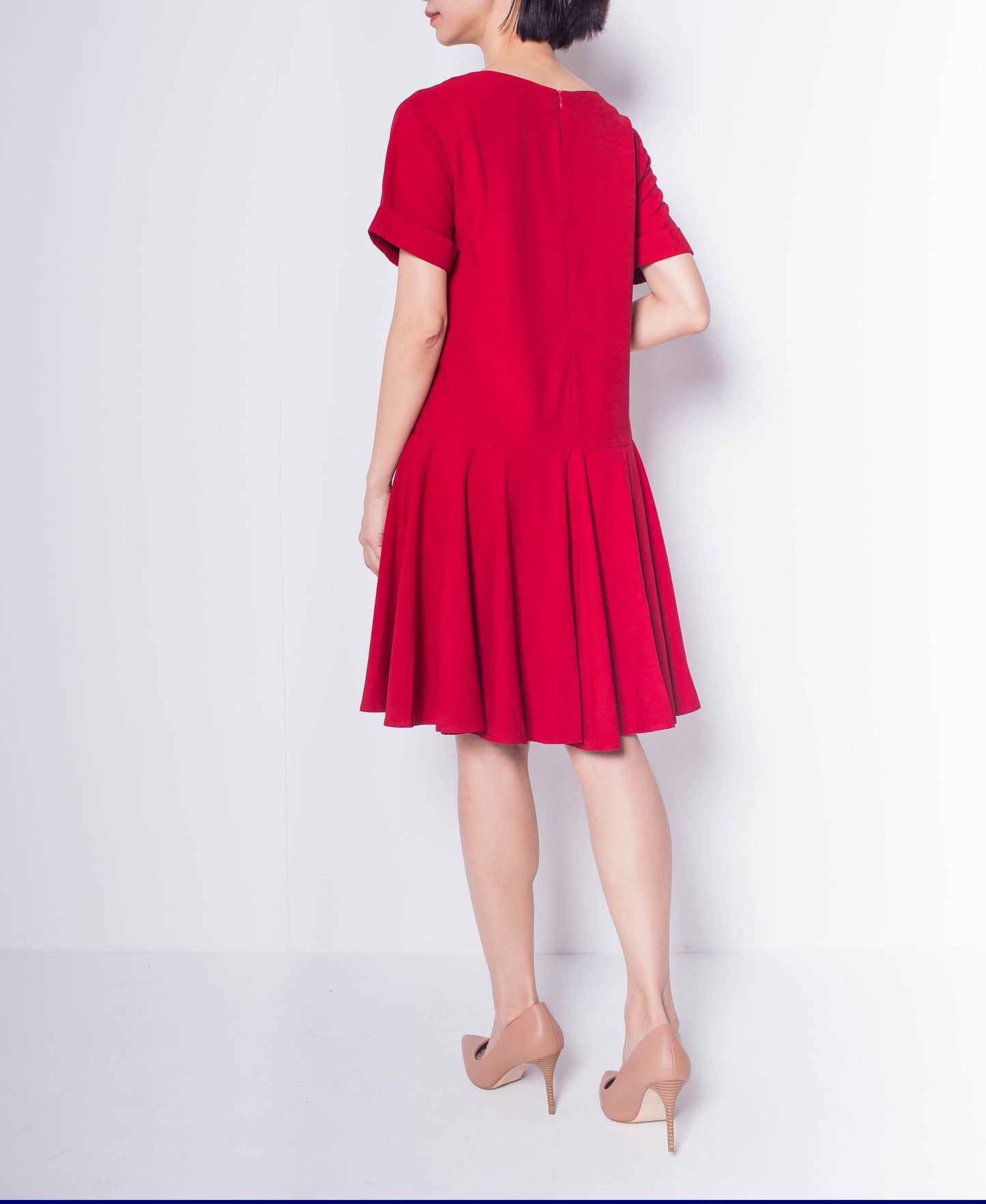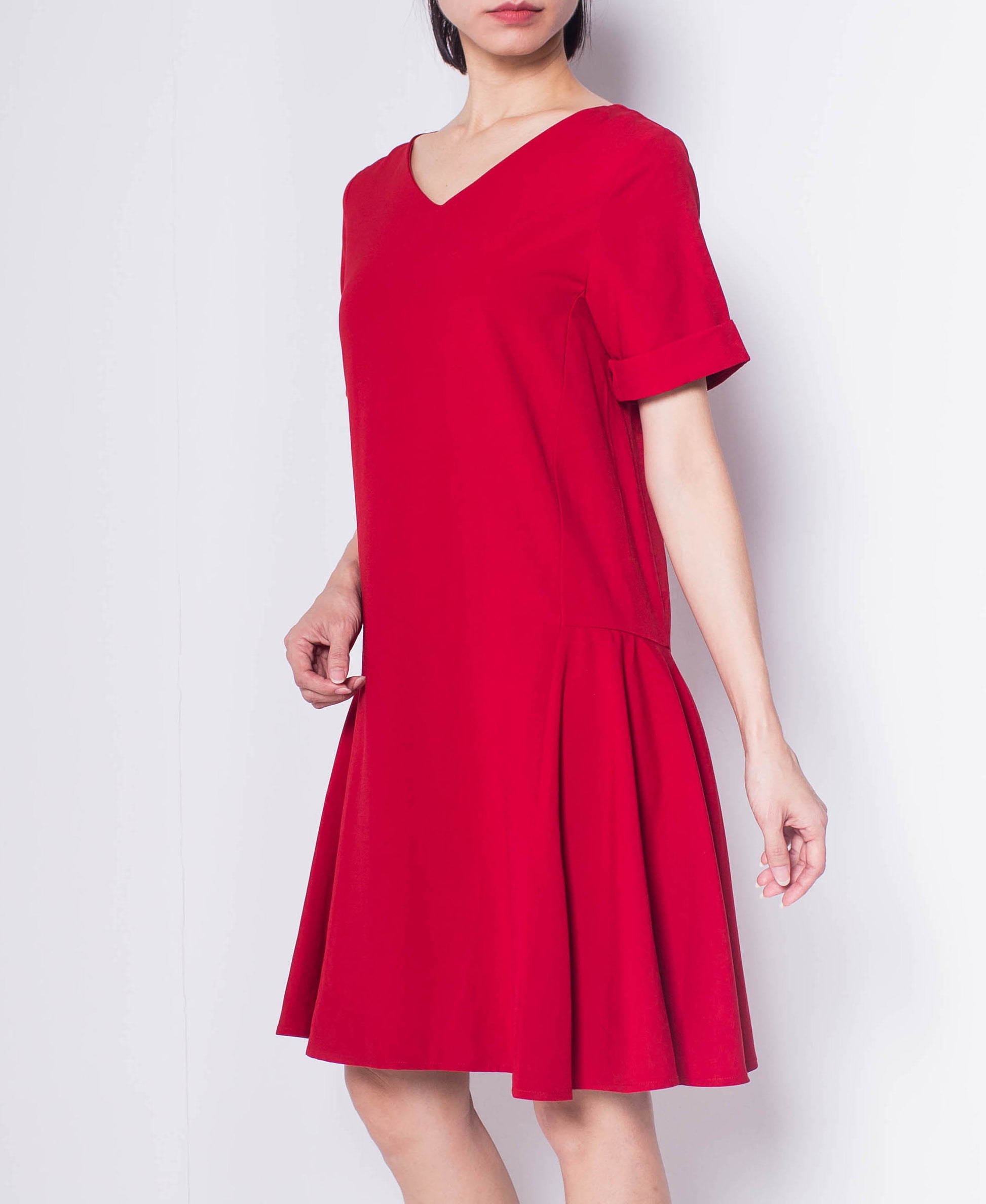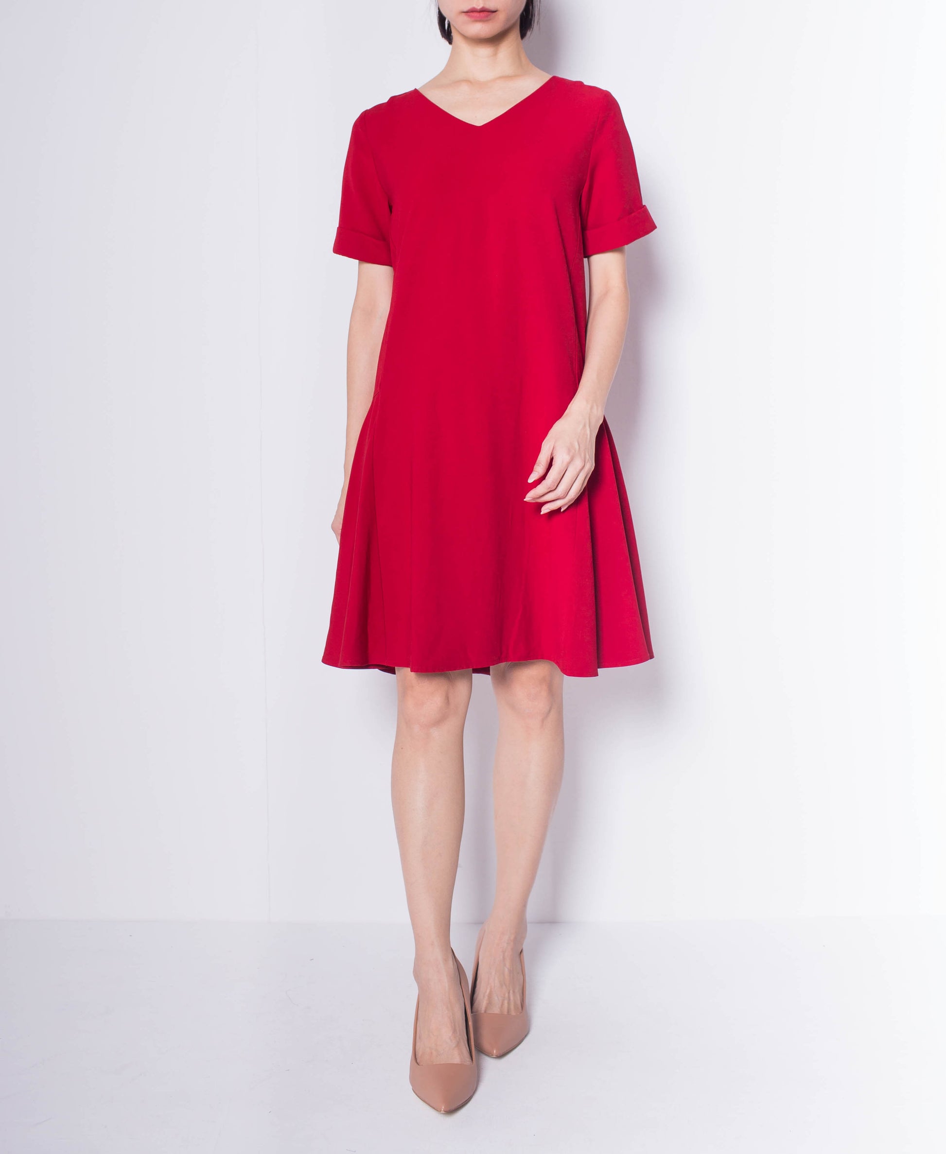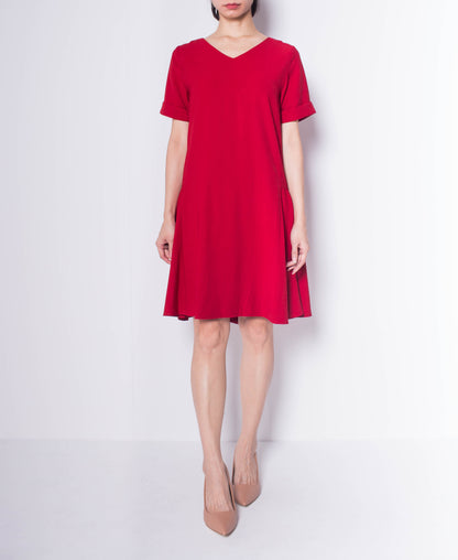 Women Short Sleeve Flare Dress - Maroon - H0W802